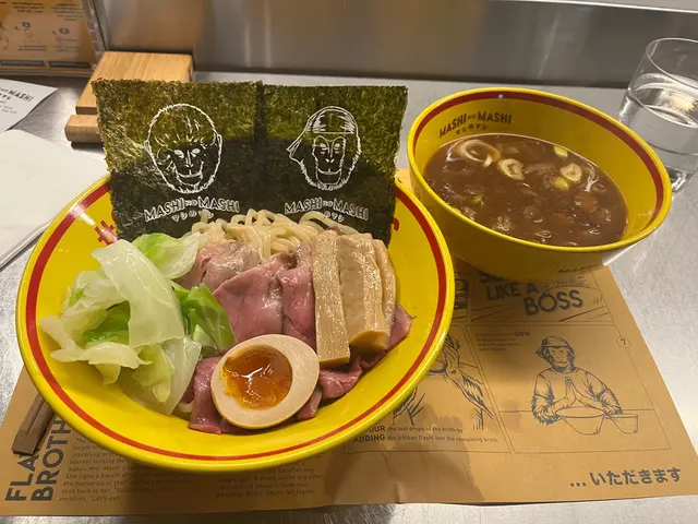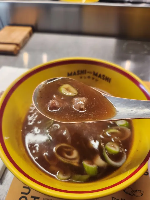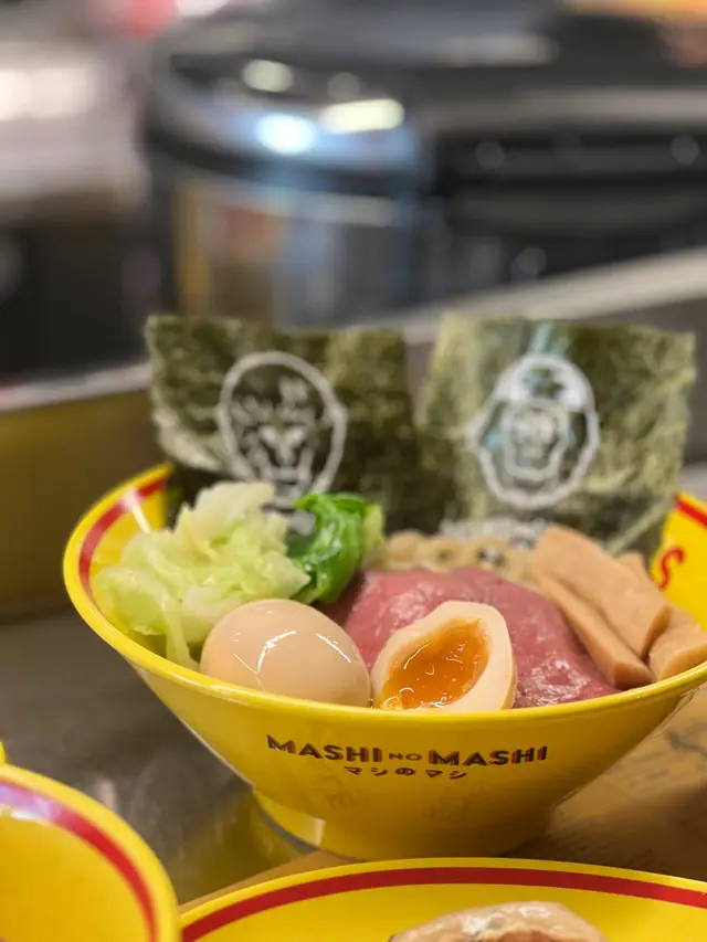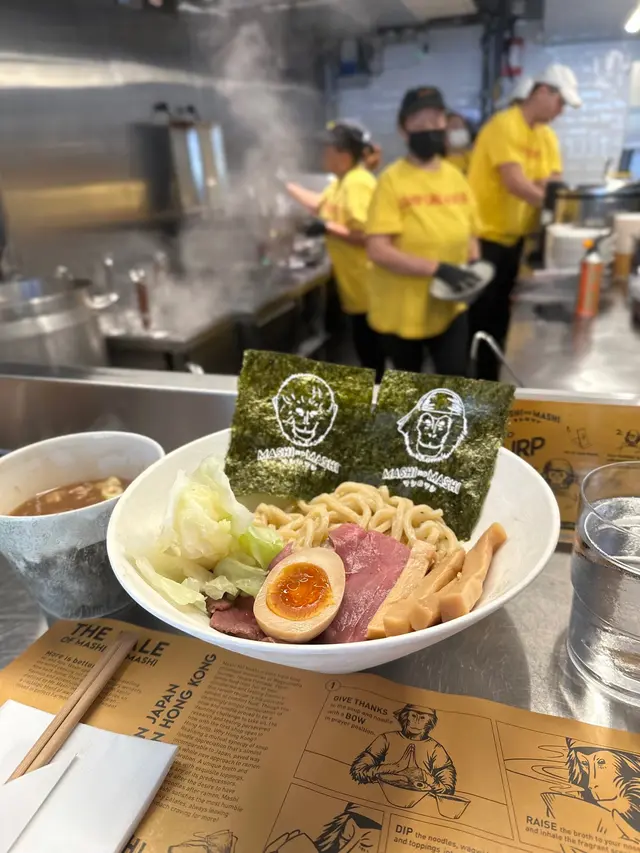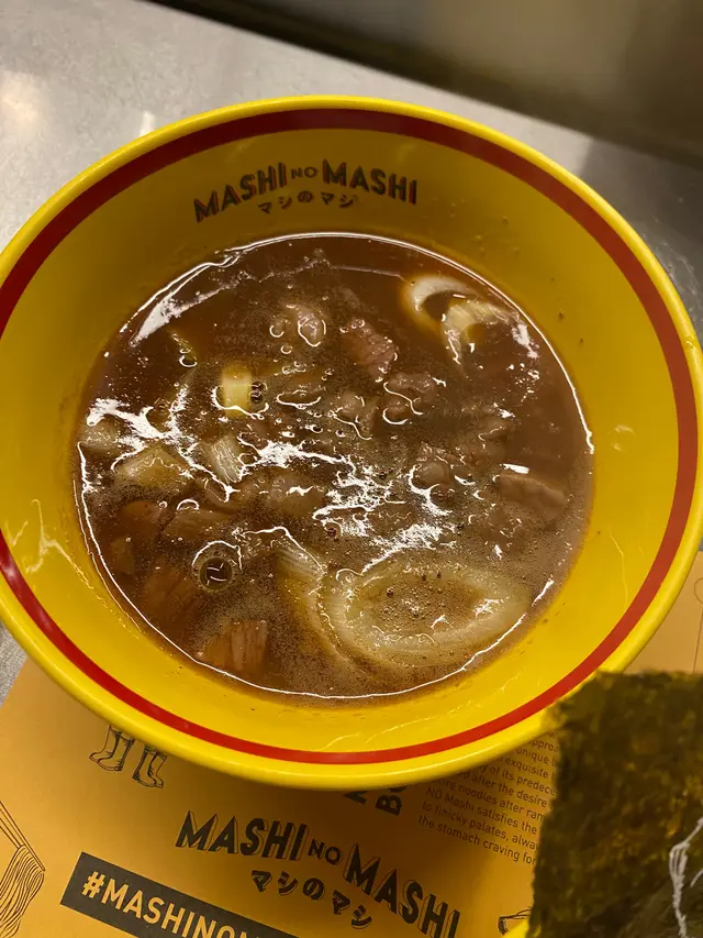 Mashi no Machi價錢: $185好味程度: 3.7/5服務🍴: /環境🗾: 3.4/5性價比🥢: 2/5回頭率😚: 2.5/5)-bookmark左呢間和牛拉麵超耐!今次終於食到,去左佢地位於銅鑼灣後邊唔係好方便嘅總店。同喺日本食拉麵一樣,都係喺門口部機度買咗飛先,跟住入去搵位坐低食。望住店員整完之後佢就會擺返個招牌甫士俾你影張相😂-✅中意的係佢地個麵質偏粗,好有咬口😋會係麵條中見到小麥粒,不過掛湯能力一般,都有小小鹼水味🤐-湯汁首先出來的味道係鰹魚味,加上d好似壽喜燒汁的甜味,鹹中帶甜,質感濃厚😆幾好食。-配料有3片和牛、椰菜、筍、紫菜、半隻🥚。🥚正常水準,有用醬油醃過,蛋黃唔係好流心。和牛唔係肥美,而係軟嫩肉感的,都ok😚-總結係其實都OK,幾鍾意個麵同醬汁,但係性價比太低,試一次就算了。…查看更多