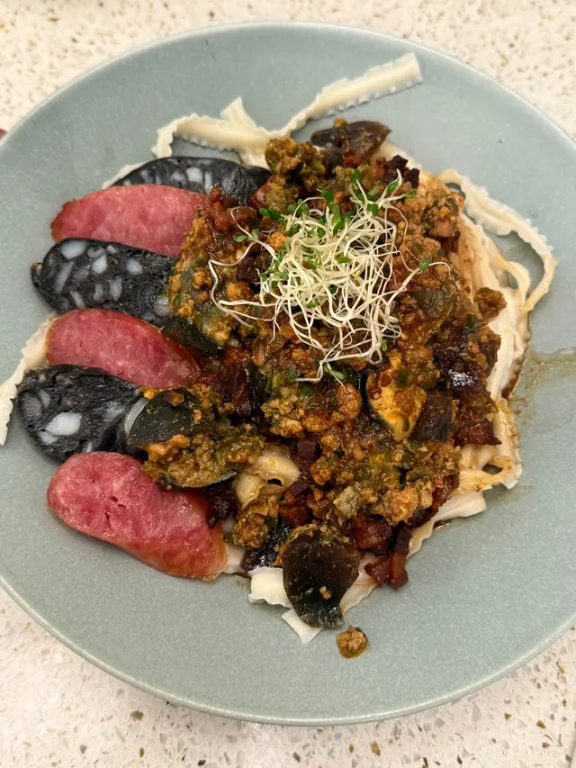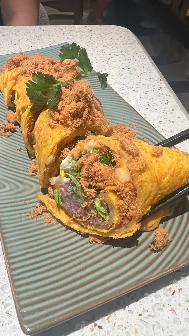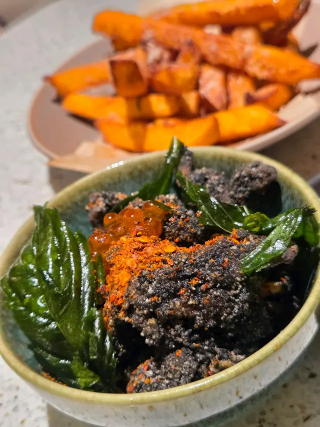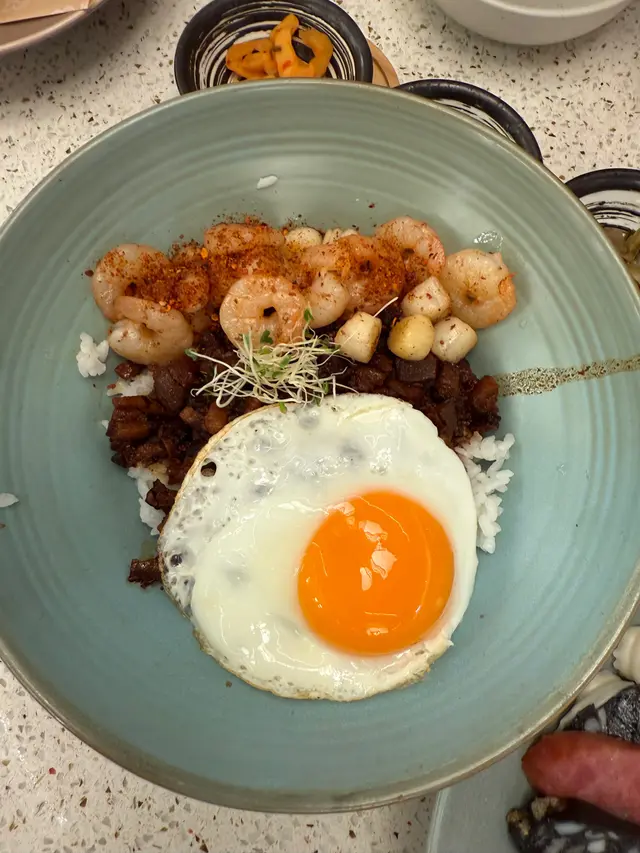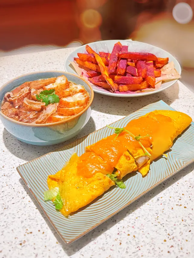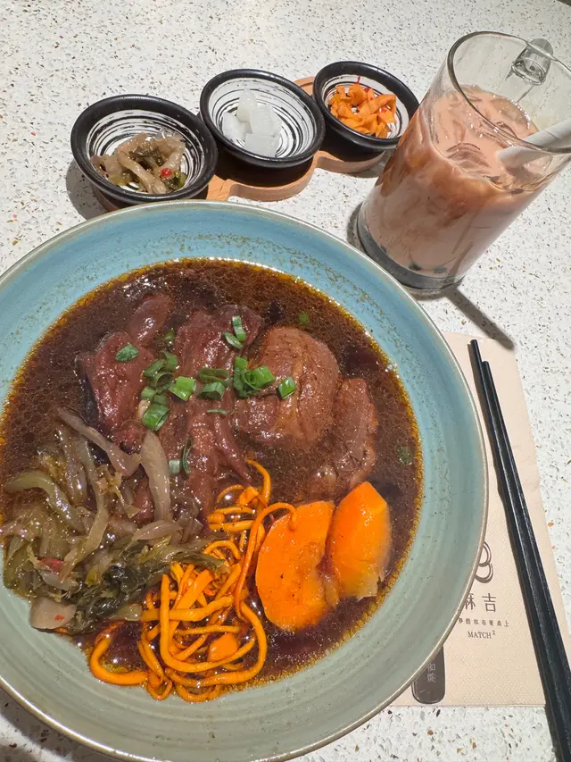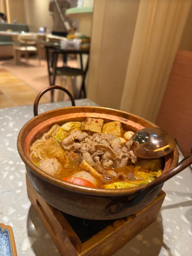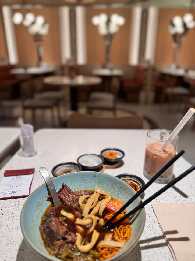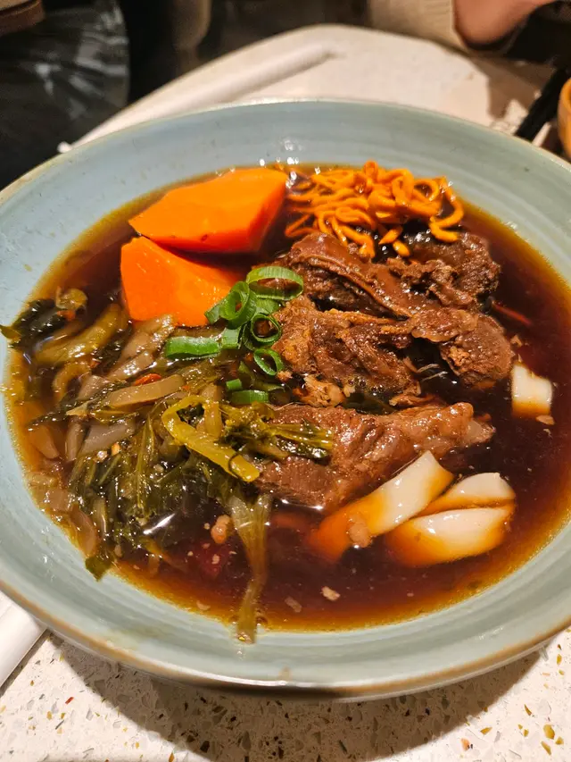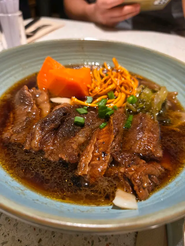 麻薯芋泥肉鬆豬排係我最中意,外皮炸得脆身,豬扒厚肉汁都鎖到住,入面有軟糯麻薯同香芋泥,再加啲肉鬆提味,甜鹹啱啱好,一啖幾過癮,食完唔會太杰太油。墨魚滑玉米燒分量十足,墨魚滑彈牙有墨魚味,炸得外脆內軟,掃咗層蛋黃醬同芝士粉,微辣帶香,幾開胃。牛肉麵湯底偏濃,香料味夠而不搶,牛肉燜得軟入,麵夠煙韌有口感,冬日食一碗暖笠笠,幾舒服。呢間餐廳啲嘢創意多又好食,唔會太甜太鹹,啱晒香港人口味,價錢都OK,之後想再試其他。…查看更多