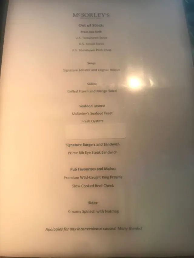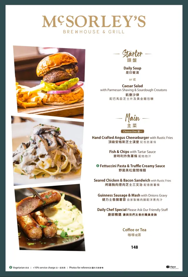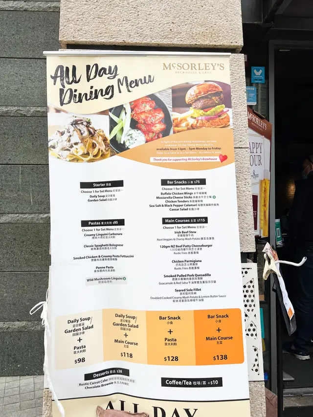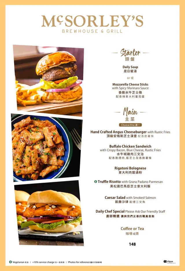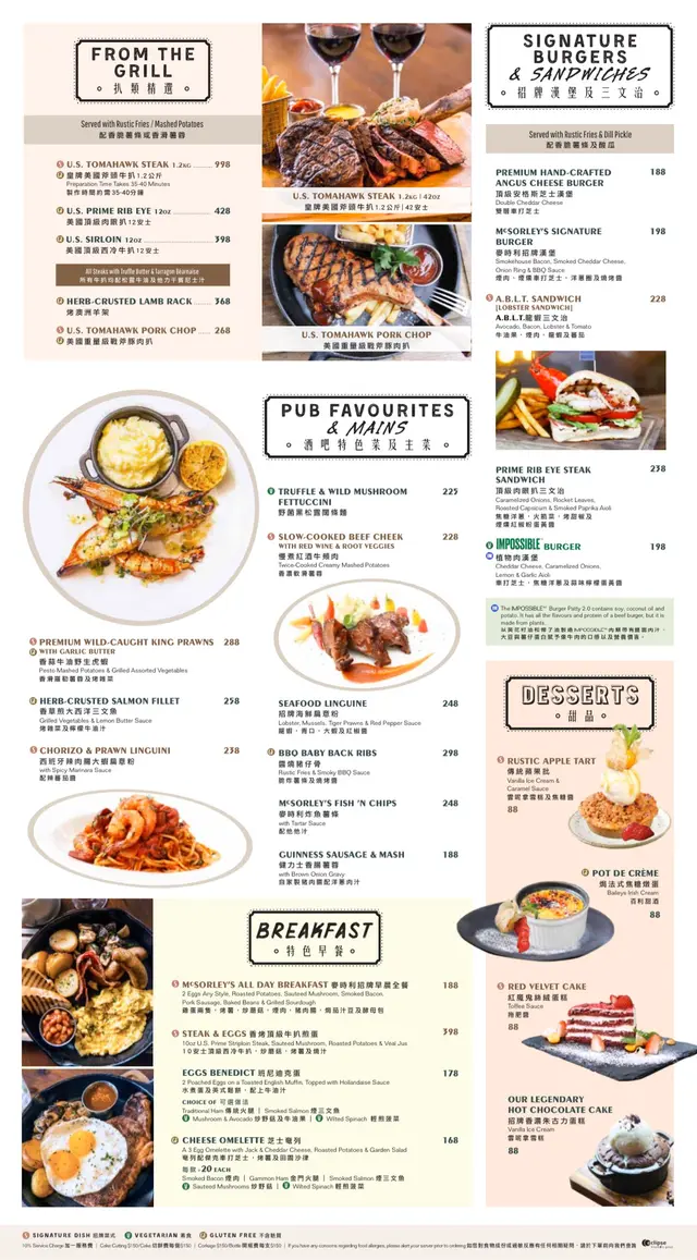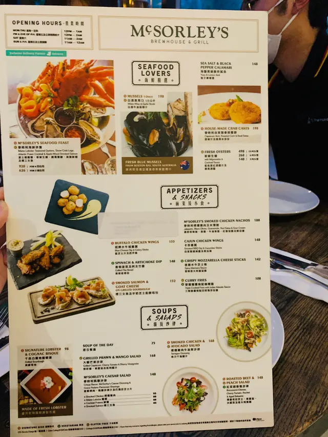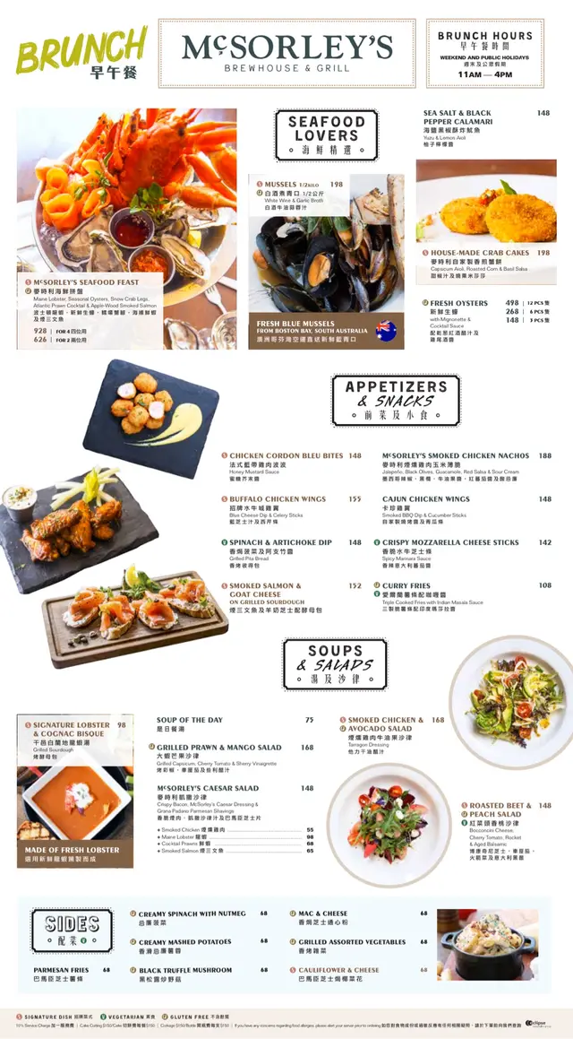 McSorley's Brewhouse & Grill (尖沙咀) 網址: https://s.openrice.com/QrbS09EG800 地址: 香港尖沙咀柯士甸道西1號圓方(Elements)3樓平台R001號舖 電話: +852 27364888