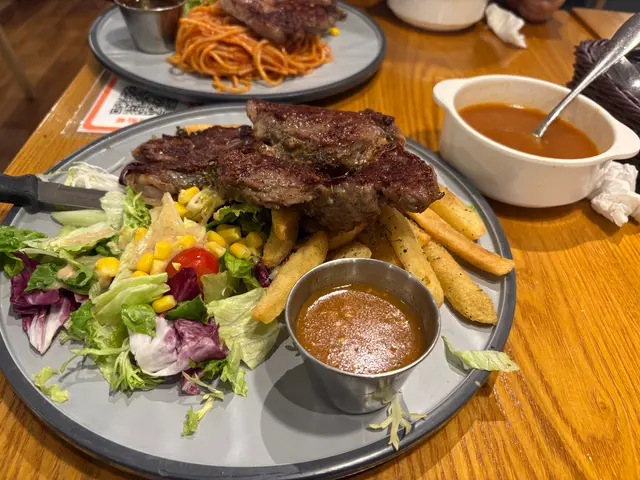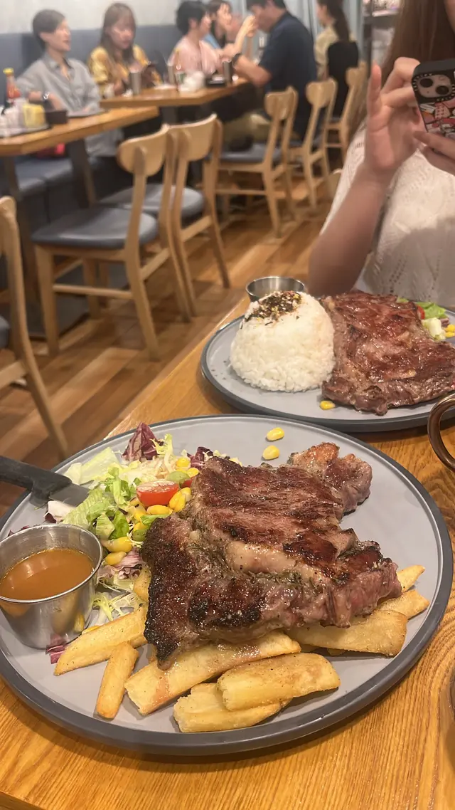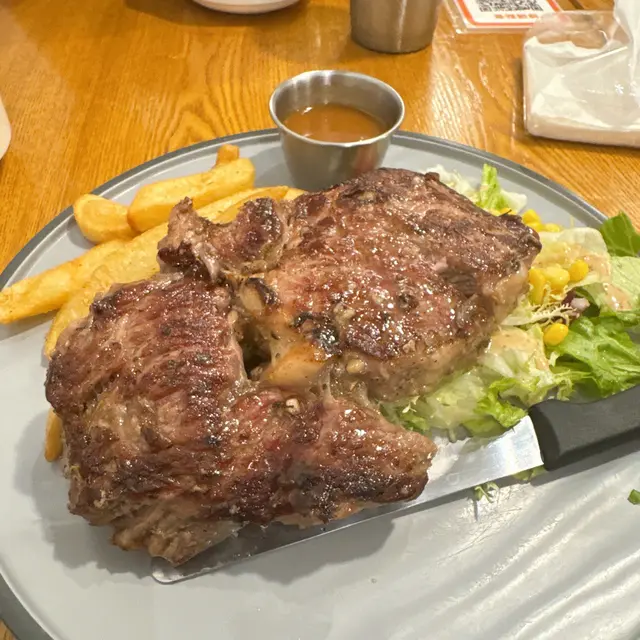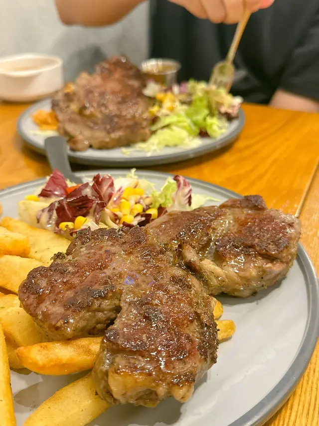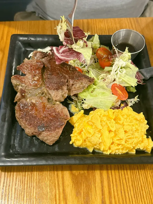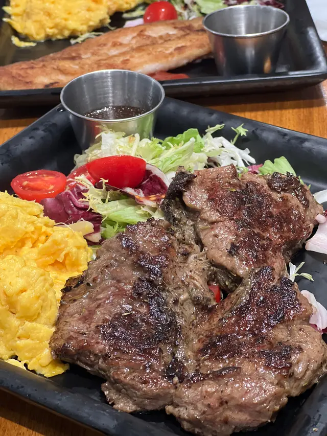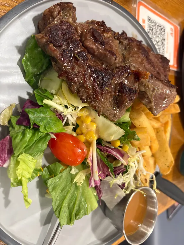 其士商業中心上到一樓轉左就見到門口睇落低調枱同枱之間唔會太逼,幾適合同朋友去叫咗個,嗌咗七成熟牛扒切開微微粉紅咬落鬆化得嚟仲有肉汁!配埋佢哋個香蒜汁,惹味但唔會蓋過牛味薯菜份量都足個薯仔烤到外脆內軟,真心抵讚朋友嗌咗,沙律菜炒蛋滑溜溜配五成熟牛扒,佢話食完冇罪惡感另外試咗杯奶蓋濃郁朱古力,$10咋!濃郁,朱古力味夠晒濃飲完想encore~整體嚟講呢度價錢合理(人均$100樓下)食物有心思環境舒服唔錯…查看更多