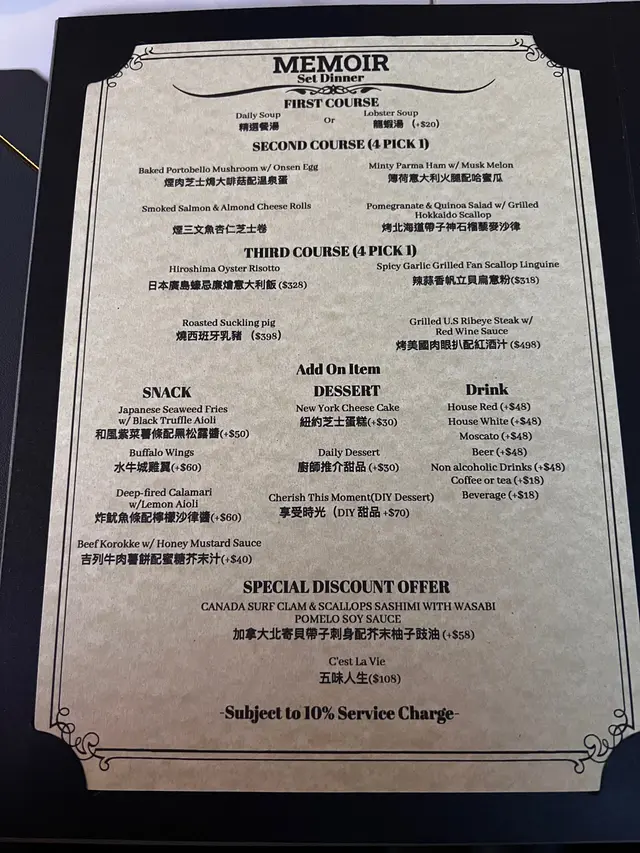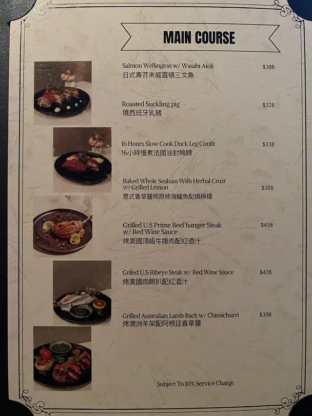 叫左3份set dinner, 食物質素好,main course燒西班牙乳豬,塊皮好薄好脆,肉好淋入味。另外ribeye 都算ok , 要medium ,雖然過左少少,都算可以。side dish嘅 薯仔有啲生。Risotto 就一般,我覺得太creamy,有啲笠口。待應嘅服務唔差亦唔好,一副唔想返工嘅樣,零表情,唔係要佢賣笑,可能諗下自己適唔適合做服務性行業。場內有3張枱係餐廳相熟朋友聚餐,佢地係場內食電子煙,係不停咁噴煙。:(支持留港消費,但要搵間值得消費。食煙,不了!