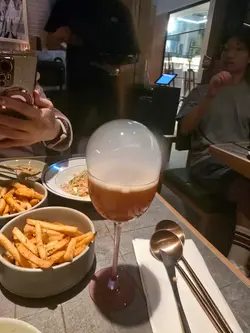 食物無問題,氣氛其實都幾好。不過入座時先知原來每人要低消一杯嘢飲(重點:食物唔計)無酒精飲品大概 $78 起跳 (free flow package 反而只需 $98,有啲難以理解個定價)當下覺得有啲被強制消費嘅感覺,odd odd 哋咁個氣氛上就有啲扣分。(訂位網站係有寫,自己無用心逐條條款睇者,唔怪得人)晚市每人惠顧一個主菜/意粉可以任食薯條。原本想食 Snack menu 入面嘅 German Pork Knuckle 但為咗個薯條改咗要主菜嘅 Classic Roasted Pork Spare Ribs (其實價錢上豬手都要$198,唔平過叫意粉,都唔當係主菜又係感覺好多掣肘咁)其實我哋嘅任食都係食咗一碟薯條就收皮了,3隻味試得1隻而且個 Ribs 仲要食唔曬打包,weak 😂😂😂 感覺食返豬手唔要薯條好似啱數啲~另外仲叫咗黑松露牛肝菌意大利雲吞,意大利雲吞入面有啲謎之爽口嘅口感(好似沙葛咁?)又幾特別,正正常常嘅組合,不錯吃(不過啲 staff 好似好忙,疑似人手不足無人幫手換碟,搞到啲骨同埋意粉要共存~ 🫣)用餐限時90 分鐘,不過上菜好快所以都okay 夠時間嘅…查看更多