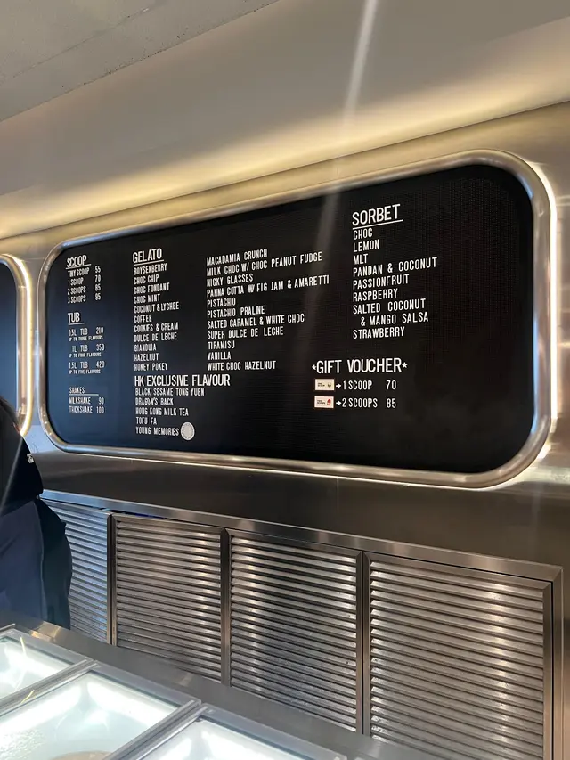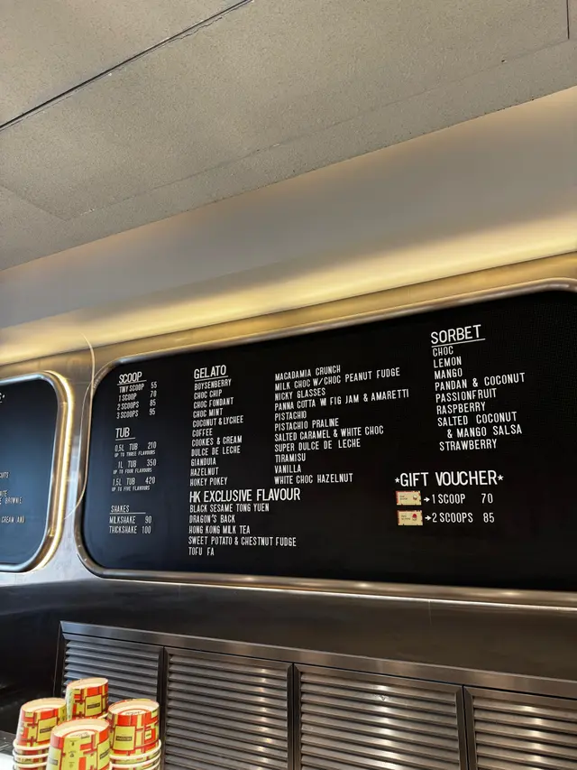 雪糕多達超過30隻口味😆全部都好吸引!雖然價錢偏高,但全部都好大球,好多layers!好有口感!🤩仲設有座位可以慢慢享用😋🍨✿黑芝麻湯圓Black Sesame Tong Yuen黑芝麻香氣十足🖤內有chewy chewy湯圓粒⚪️配埋綿滑雪糕口感特別🤓✿港式奶茶味 Hong Kong Milk Tea口感順滑🧋味道像是Lipton奶茶的味道🧐食食下感覺相對單一🥸✿Salted Hazelnut Gelato With Butterscotch Swirls And Waffle Cone Crunch帶海鹽鹹鹹地嘅榛子口味幾平衡,榛子味突出🌰內有焦糖餅乾碎,提升口感😝整體味道層次豐富,但稍為偏甜~😬$𝟳𝟬/𝟭 𝘀𝗰𝗼𝗼𝗽$𝟴𝟱/𝟮 𝘀𝗰𝗼𝗼𝗽𝘀$𝟵𝟱 /𝟯 𝘀𝗰𝗼𝗼𝗽𝘀…查看更多