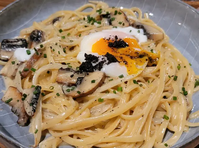 周末假日發掘到一間優質Cafe小店~值得再次到訪,食物同咖啡都唔錯,性價比高,下次一定要試埋其他甜品!蟹肉煙三文魚明太子忌廉闊麵🍝足料而且意粉非常掛汁,配埋溫泉蛋唔會漏👍🏻富士蘋果肉桂焦糖牛角包🥐蘋果醬係小店自家整,酸酸甜甜同牛角包非常夾,冇諗過牛角包size咁大😂好抵食黑松露薯條🍟唔係得個醬有黑松露,係每一條薯條都有黑松露!而且食得出係用高質黑松露👍🏻咖啡有nutty/fruity/winey blend揀,岩飲😌👍🏻