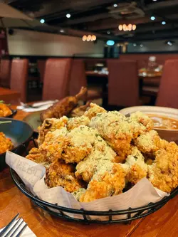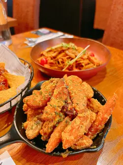 星期六晚為咗慶祝女友爸爸生日🎂,我哋一行人去咗觀塘 Mini Friday。間餐廳喺工廈區,入到去燈光柔和偏暗💡我哋人多,所以點咗好多嘢食,諗住大家開心 Share,成個氣氛勁 warm 勁開心🥳!小食拼盤 👍👍👍👍 一上枱,嘩,好大份!🤩 有齊薯條🍟、洋蔥圈、雞翼、春卷等等,炸得夠香脆,熱辣辣。樣樣都算好食,唔會太油膩,點茄汁或沙律醬都唔錯,最啱一大班人開心 share 做 MUNCHIES!炸魷魚圈 👍👍👍👍👍 因為個拼盤食得好開心,我哋即刻 encore 加點咗個 炸魷魚圈。🦑 呢個真係有驚喜!炸粉薄脆,魷魚圈爽口彈牙,唔會韌,食得出新鮮,點埋個他他醬,勁好味!😋Friday雞翼 (柚子蜂蜜) 👍👍👍👍 呢個 Friday雞翼 (柚子蜂蜜) 🍗🍯 個醬汁好特別,柚子蜜味好清新,甜甜地帶少少酸,好開胃。雞翼炸到外皮脆卜卜,入面啲肉仲 keep 到 juicy,唔錯唔錯!韓式甜辣醬無骨炸雞配粟米片 👍👍👍 韓式甜辣醬無骨炸雞 呢個外層用咗粟米片🌽,咬落口感卜卜脆,幾得意。無骨啖啖肉好方便,韓式甜辣醬味道夠,少少辣🌶️,幾惹味。不過個醬比較濃,食得多可能會覺得有啲漏。和風大阪雞肉薄餅 👍👍👍👍和風大阪雞肉薄餅🍕 個樣同味道都好似食緊章魚燒/大阪燒咁!🤣 薄脆批底上面有雞肉、椰菜、木魚絲,再淋埋日式燒汁同沙律醬,味道甜甜鹹鹹,個 fusion 效果幾過癮,幾好食!泡菜卡邦尼意粉 👍👍👍👍👍泡菜卡邦尼意粉 🍝🌶️ 呢個組合超有驚喜!估唔到卡邦尼嘅忌廉芝士濃郁口感,配埋韓式泡菜嘅酸辣竟然咁夾!😮 意粉煮得啱啱好 al dente,醬汁 creamy 得嚟又有泡菜解膩,味道好有層次,必試!香草燒雞 👍👍👍主菜 香草燒雞 🐔 size 係夠大份嘅。外皮燒得幾香脆,帶有香草味🌿。雞肉都算滑,唔會太乾,但略嫌唔夠入味,要點啲汁先夠味。整體不過不失啦。安格斯牛仔骨配黑松露燒汁 👍👍👍👍👍 (5/5)另一主菜 安格斯牛仔骨配黑松露燒汁 🥩 就真係冇得頂!牛仔骨燒得火喉啱啱好,肉質超軟腍,好輕易就離到骨。個黑松露燒汁超香濃🍄,配埋牛仔骨嘅肉香同油香,真係非常惹味!🤤 超級推薦!…查看更多