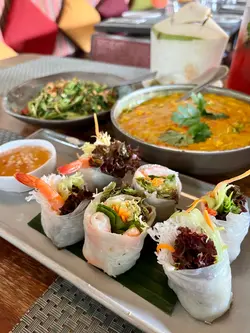 週六同朋友一齊嚟咗呢間喺東涌嘅 Pan Asian 餐廳🍴食午餐,Pan Asian 即係有 泰國呀🇹🇭印度呀🇮🇳印尼呀🇮🇩越南呀🇻🇳馬來西亞呀🇲🇾新加坡呀🇸🇬等等食物嘅餐廳🍴🤣$138「沙嗲串燒(雞肉/豬肉)六串 Sate Ruam Mit (Gai / Moo) 6 pieces」:有3串雞肉同埋3串豬肉,兩種肉類都肉質軟熟,燒完之後水份減少咗,令到 umami 更加集中🤩;仲有一小兜非常濃郁兼少少甜嘅花生醬汁可以沾串燒食🤩;Grilled Chicken / Pork satay, served with a rich and sweet peanut sauce🤣$98「咸魚粒炒芥蘭走鹹魚 Phad Kha Na Pla Kam」:芥蘭菜🥬新鮮,顏色翠綠,口感爽脆,簡單清炒已經夠好味,用鹹魚炒就更加惹味,鹹魚本身就當然係勁有鹹香啦🤣$248「泰式靑檸辣椒汁蒸魚 Pla Suay」:魚係 盲鰽魚 Barramundi,盲鰽魚肉質細滑鮮甜仲大大條好多肉😋,又加咗 青檸、紅蘿蔔絲、芹菜、香茅、南薑、香蔥、車厘茄、芫荽、椰菜 等,配料豐富🤩,特別係嗰啲綠色切薄片嘅青檸,單係眼睛見到已經感覺好清新🤣,而且咁樣更加惹味又可以辟腥👍,Fish steamed in a fragrant Thai-style herb broth, served with a chilli and lime sauce 😋,另外仲有一碟紅紅哋色辣辣哋鹹鹹哋甜甜哋嘅醬汁,想濃味啲就可以要嚟沾魚食🤣$68「羊肉烤溥餅 Lamb Murtabak」:呢個係嚟自印度🇮🇳嘅食物👍,餐牌寫住 Tender and spiced lamb sauteed and stuffed in pan-fried bread 🤣,熱辣辣嘅薄餅裏邊有好香嘅羊肉碎同埋脆脆哋嘅洋蔥,出奇地香口好味🤣$68「椰子🥥雪糕 🍧Coconut Ice Cream」:雪糕夠滑,呢個唔係固體嘅雪糕係厚身流質忌廉狀咁幾特別,有清新嘅椰子香味,兼且勁甜食得人好開心🤣;Fresh housemade coconut ice cream🤩…查看更多