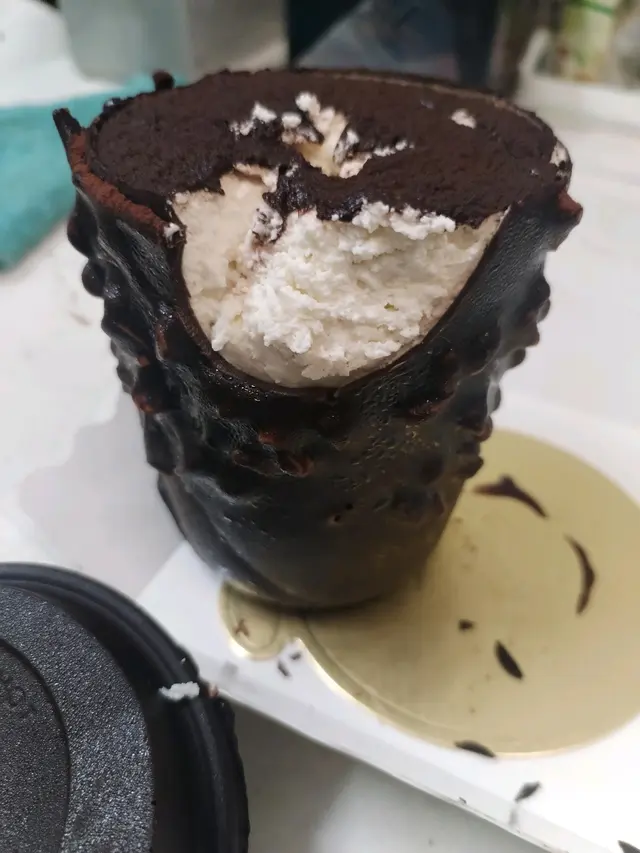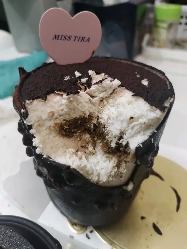 將Tiramisu 模造成長條狀,賣相係幾靚嘅,容易切成一份份,喺銷售嘅時候可以賣得快啲,但無晒 Tiramisu 嘅韻味。 試咗件 Tiramisu 朱古力杯,期望愈大,失望愈大。 而家嘅甜品只有外觀,沒有內涵。第一個反感係啲Cream 打老晒起粒、無層次、沒細膩,失敗咗都照抆落去。抆水泥起粒都要再打過啦,更何況你地係整蛋糕嘅, 一啲職業操手都無。 唔講,仲以為係椰絲杯嚟… cream and cheese base 一啲芝士味係食唔出,Cream 多過 cheese, Cream 嘅奶油香味亦都無。 夾層塊蛋糕乾嘅,無索到咖啡,得個顏色,所以中間位一啲咖啡味都無。𢳂到底終於有啲濕咗嘅蛋糕, 但都係得好微嘅咖啡味。 杯蓋塊朱古力做到好厚,貪多嘅人可能會鍾意,但我expect 係摼得碎可以同個 creamy base 混合嚟食,不過唔係嗰回事。 整體嚟講,無論味道、口感、用料都唔掂,寫個名就當係Tiramisu?! 完全係粗製濫造…有如興趣斑第一堂整嘅手作咁查看更多
