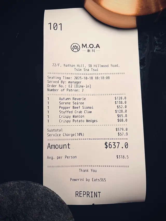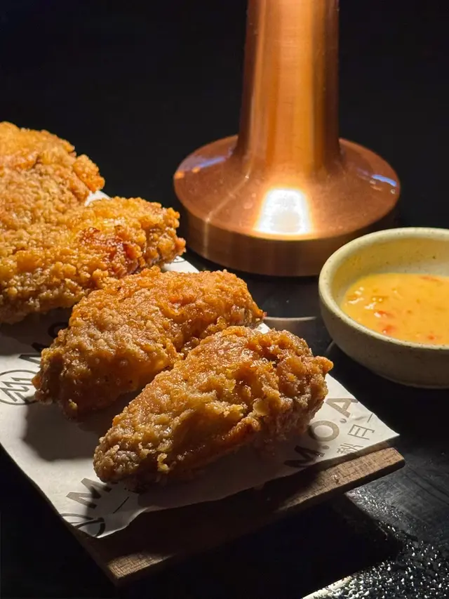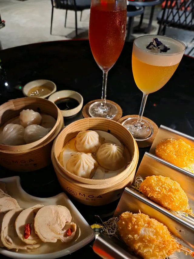 居高臨下的天台酒吧,可以全方位眺望城中風景,今次就來到位於尖沙咀的 MOA 秋月,紅黑配色設計時尚有格調,戶外位置景觀開揚,入夜後璀燦迷人夜景盡入眼簾,在如此醉人景色下品酒,徘徊在微醺與清醒之間,夢幻唯美的酒吧酒藏齊全多樣,在昏黃柔和的燈光映照下,猶如被浪漫迷醉氛圍包圍,餐牌主打特色雞尾酒,最近推出秋季限定新款式,此外亦供應佐酒小食,款式中西合璧,感受東方韻味與現代調酒藝術的碰撞,入座後奉上Welcome drink,酸梅汁酸甜消暑,挑起舌頭的慾望,喚醒沉睡的味蕾。還原靚靚拳 $138招牌雞尾酒配搭破格創新,揉合醇厚的發酵米酒、法國白酒、甘甜的桂花陳年橘皮糖漿,矜貴燕窩可以單吃或拌入酒中,滋補養顏,將甜美與微醺交織。秋菊 $128秋季推出的新品特調,頂層氣泡酒增添層次,以Two Moons Signature干氈酒為基底,酒味層層遞進,味道細緻平衡,滲出菊花的清幽花香餘韻。百花釀蟹鉗 $128 自家製釀蟹鉗大隻厚肉,外層炸至金黃酥脆,內餡扎實彈牙,飽滿鮮甜,點些秘製醬汁更加惹味開胃,中和炸物本身的膩感。港式雲吞 $65炸雲吞外皮輕薄脆身,結實肉餡保留豐滿肉汁,沾上微辣醬汁,溫暖辣感增添味蕾上的刺激。東北黑椒牛肉燒賣 $55蒸籠上熱氣騰騰,不論造型還是味道,有別於一般燒賣,薄身有嚼勁的燒賣外皮裹滿綿軟中帶著黏性的糯米飯,混合牛肉碎、即磨黑胡椒和菇菌,展現中式點心無限的可塑性。土匪薯角 $68薯角連著薯皮焗得金黃酥脆,肉心軟綿細密,佐以濃郁香辣的孜然香料,香氣撲鼻,帶來層層疊疊的椒麻韻味。…Read More