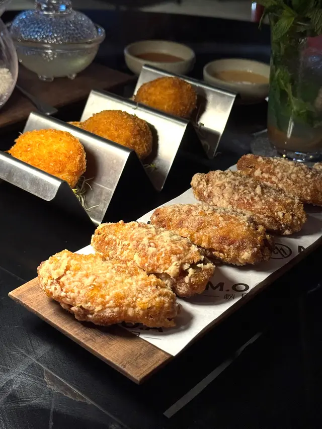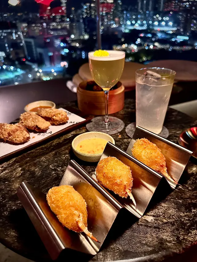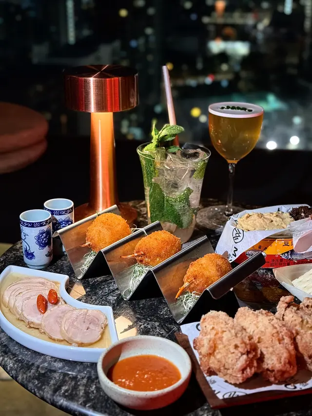 位於尖沙咀的靚景點心酒吧。有朋友去過這間酒吧,位於22樓的高空,更有一個大的戶外露台,微醺下擁著身邊人眺望尖沙咀全景更有FEEL,最近諸多不順想飲酒,但厭倦了諾士佛台的喧囂繁華,便決定轉移陣地到此靚景酒吧抒壓一下。.⋆_____ᴛᴏᴛᴀʟ ᴏʀᴅᴇʀ______⋆ ✿ Drinks:♡ 還原靚靚拳 $138經典的港式幽你一默命名。以Nigori Sake的柔和米香作為主調,配上桂花陳皮糖漿帶來細緻花果香,同時另附上一小碗燕窩,使整體口感更滑順,飲酒也飲出奢華感,而且相當容易入口,很適合不擅喝酒的朋友們啊。.♡ 外商古老肉128睇唔明的酒名,店員解釋是取咕嚕肉之諧音,一口酒一口肉乾,像是複刻了經典廣式咕嚕肉的醬香,有趣。以甜椒浸泡清酒為基調,入口感受到微微辛香及清爽;加入鳳梨汁帶出自的然酸甜感,最後更有明顯茄汁和青檸的輕酸,很創新的口味!..✿ foods:♡ 百花釀蟹鉗 $128♡ 東北黑椒牛肉燒賣 $55♡ 南乳雞翼 $98♡ 港式炸雲吞 $65幾款點心都很有誠意,至少絕對不是用叮叮點心來交功課。當中東北黑椒牛肉燒賣 是用燒賣皮包裹著糯米飯及牛肉碎,對於喜歡食糯米包的我,這個相當高分!而自家製釀蟹鉗及炸雲吞金黃酥脆,內餡飽滿鮮甜;南乳雞翼的肉質鮮嫩多汁,香味濃郁,惟南乳味不算突出。…查看更多
