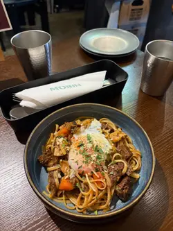 之前搭巴士總會路過這間餐廳,這次終於一嚐。位於佐敦逸東酒店地下的 MOBIN,以創意融合菜為主軸,在繁華鬧市中提供了一個兼具品味與價值的用餐選擇✨🧀油麻地腐乳邦尼 $138這道菜以本地風味為靈感,將傳統腐乳與西式烹調手法結合。九龍仔臘腸的香氣濃郁,腐乳芝士的鹹香點到即止,並未過分強烈,與慢煮蛋的柔滑質感相得益彰。蛋液裹挾著臘腸與芝士,入口層次豐富,且未使用忌廉,更顯清爽不膩😋🍳西班牙烤洋蔥薯仔五吋原個蛋餅 $115這道蛋餅以日本蛋為基底,內含焦糖洋蔥、薯仔、蕃茄及芝士。芝士香氣濃郁,與蛋香完美融合。薯仔切片分明,口感軟糯,搭配焦糖洋蔥的甜香與芝士的煙韌,整體風味樸實卻令人滿足。雖無肉類,但飽足感十足🤤🍎香烤蘋果焦糖醬脆餅 $108這道甜品屬於「布奴耶羅」系列,以輕盈蓬鬆的麵餅為基底。脆餅造型獨特,宛如倒置的碗,中空設計巧妙地承托著雪糕與蘋果,增添食趣。雲呢拿雪糕上淋滿朱古力醬與焦糖醬,再撒上肉桂粉,冷熱交融的滋味令人驚喜。烤蘋果粒帶有溫熱的香甜與肉桂香氣,與脆餅的酥脆形成對比😚…查看更多