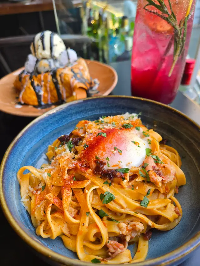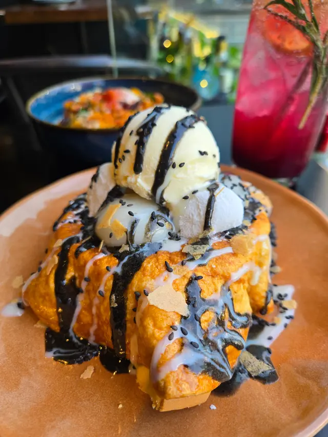 之前搭巴士總會路過這間餐廳,這次終於一嚐。位於佐敦逸東酒店地下的 MOBIN,以創意融合菜為主軸,在繁華鬧市中提供了一個兼具品味與價值的用餐選擇✨🧀油麻地腐乳邦尼 $138這道菜以本地風味為靈感,將傳統腐乳與西式烹調手法結合。九龍仔臘腸的香氣濃郁,腐乳芝士的鹹香點到即止,並未過分強烈,與慢煮蛋的柔滑質感相得益彰。蛋液裹挾著臘腸與芝士,入口層次豐富,且未使用忌廉,更顯清爽不膩😋🍳西班牙烤洋蔥薯仔五吋原個蛋餅 $115這道蛋餅以日本蛋為基底,內含焦糖洋蔥、薯仔、蕃茄及芝士。芝士香氣濃郁,與蛋香完美融合。薯仔切片分明,口感軟糯,搭配焦糖洋蔥的甜香與芝士的煙韌,整體風味樸實卻令人滿足。雖無肉類,但飽足感十足🤤🍎香烤蘋果焦糖醬脆餅 $108這道甜品屬於「布奴耶羅」系列,以輕盈蓬鬆的麵餅為基底。脆餅造型獨特,宛如倒置的碗,中空設計巧妙地承托著雪糕與蘋果,增添食趣。雲呢拿雪糕上淋滿朱古力醬與焦糖醬,再撒上肉桂粉,冷熱交融的滋味令人驚喜。烤蘋果粒帶有溫熱的香甜與肉桂香氣,與脆餅的酥脆形成對比😚…查看更多