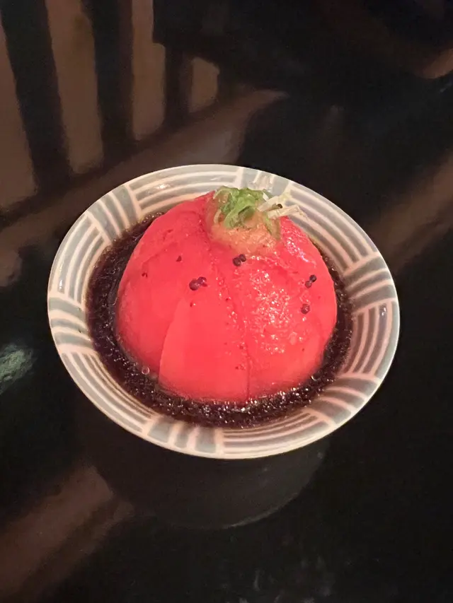 蕃茄沙律開場的蕃茄沙律,色彩繽紛,新鮮的蕃茄切片,淋上特製的油醋醬,酸甜的滋味在口中瞬間爆發,令人耳目一新。