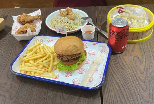 一入到嚟間餐廳 出面街嘅嘈音就無曬 地方幾乾淨同靜Lunch hour客人唔算多,一嚟即刻有位坐Staff都即刻嚟serve我哋叫咗杯Mango lassi先味道ok 但唔太夠凍 3/5 $48叫咗個lunch set幾抵 $48 主食連餐湯好快就上咗餐湯 4/5之後等咗陣就上埋個主食 - 尼泊爾辣麵 4/5幾惹味有好多菜 份量正常Staff仲會主動問要咩辣度叫咗小辣但都係偏辣