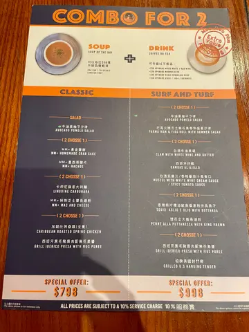 今日同朋友行街時經過銅鑼灣,見到一好chill既西餐店,我哋兩個二話不說,就決定入去嘆返個豐富午餐先🍽️⭐️經典之堡配薯條🍟漢堡包同埋個薯條份量好多,手打牛肉好厚身,肉質好Juicy,中間夾住一啲蕃茄🍅生菜🥬非常足料,薯條炸得内脆外香,加埋小小辣粉系面,味道更加惹味🤤⭐️美國封門柳配薯菜🐮五成熟肉質嘅封門柳,肉質非常嫰滑,牛肉味道好濃郁,分量都好多下,非常抵食😍⭐️MM+黃金蟹餅🦀每一件蟹餅炸到香脆可口,蟹餅切開之後,入面好多蟹肉絲,夾埋忌廉汁一齊食,口感好creamy😋⭐️香蒜蜜糖雞翼🧄雞翼外皮烤得好香脆,配上蜜糖同炸蒜片,味道非常好食😍⭐️蕃茄海鮮忌廉湯該🥣海鮮湯嘅味道好濃,忌廉味香甜🤤⭐️柚子雪葩🍧柚子既味道好香濃,食落口有種好清新嘅感覺🤩…查看更多