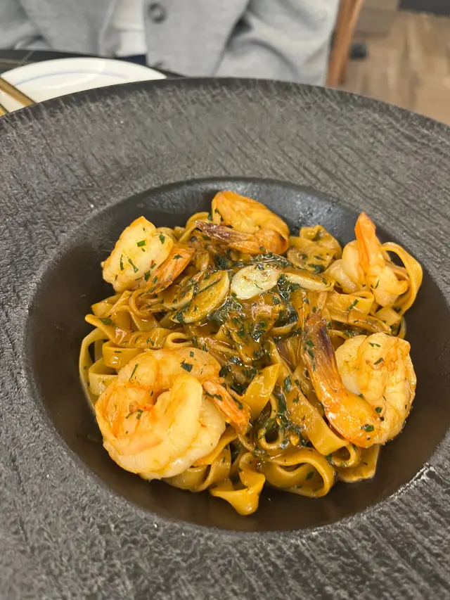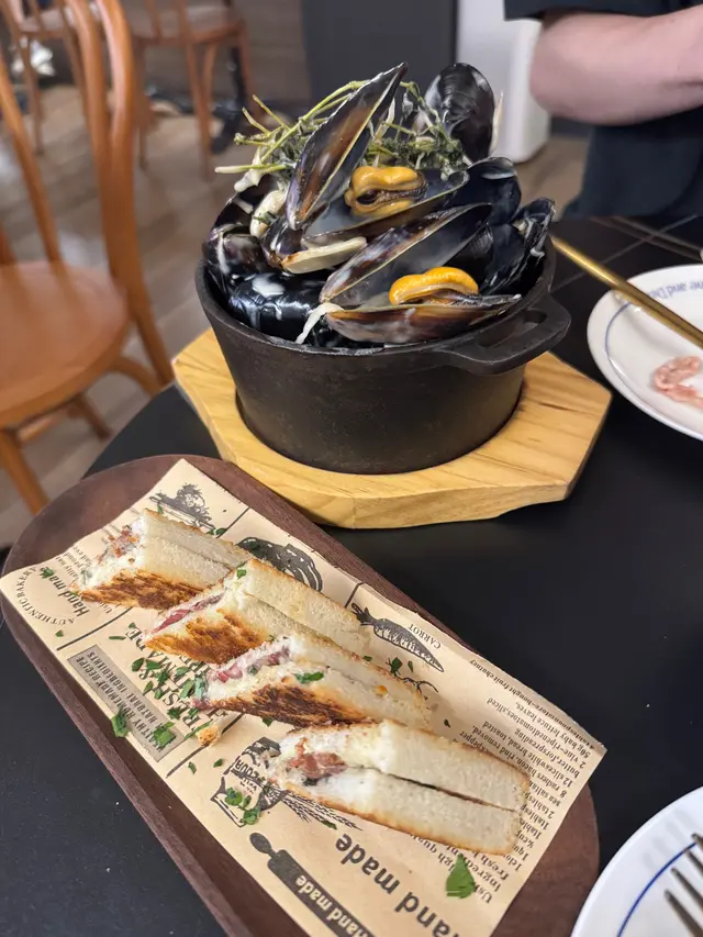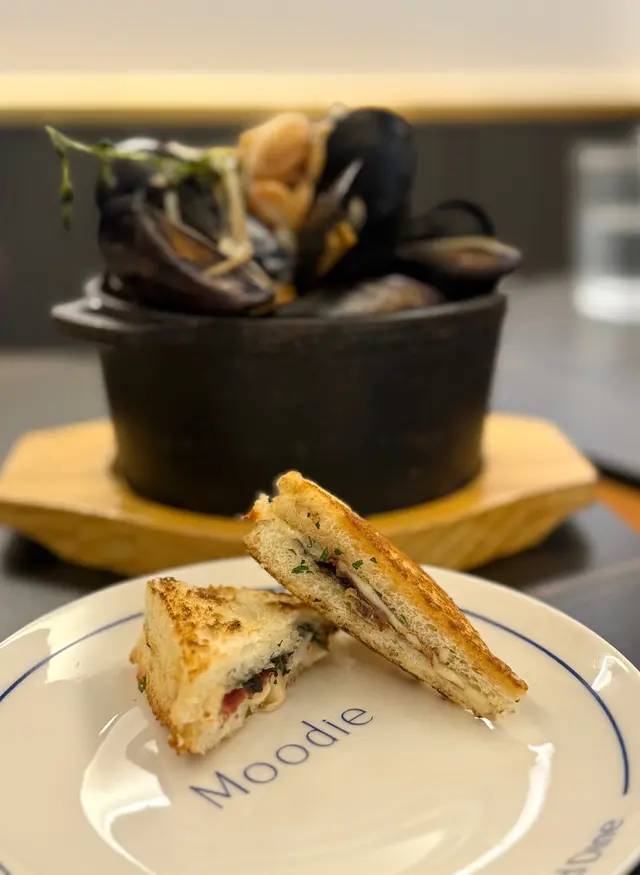 社交平台成日見到Moodie嘅reels,見到佢啲手工意粉唔錯就去咗。餐廳喺中環蘭桂芳果邊,記得要book位先好去。Tasting menu $688 (2 pax)🔹Parma ham火箭菜沙律 及 黑松露比基尼三文治原本個set係生牛肉他他同埋比堅尼三文治,因為我同朋友都唔食生牛肉,所以就轉咗Parma Ham火箭菜沙律。Parma Ham火箭菜沙律係用黑醋調味,食落去好Fresh。而黑松露比堅尼三文治好重黑松露味細細件幾開胃。🔹日式柚子胡椒藍青口店員強烈介紹嘅款式之一,呢個日式柚子幾特別,佢係又有柚子嘅甜味又有胡椒嘅辣味,食到一半覺得辣,會有柚子味中和,再加上個汁好creamy😋其實撈飯撈意粉都正🥰雖然藍青口好細隻,但勝在好新鮮,好鮮甜,份量多🤤🔹龍蝦湯蕃茄長通粉配雞胸龍蝦湯勁濃,令到長通粉好掛汁,而且雞胸肉好嫩滑,好多芝士碎放咗係面,撈埋一齊食就好正🤩🔹慢煮伊比利亞黑毛豬配秘制杏脯醬黑毛豬肉好嫩口,中間仲有少少粉紅色,唔會過熟,靚嘅豬先會做到呢個效果🤓再加埋佢自家製嘅杏脯醬,食落每一啖都係甜蜜味,同黑毛豬出奇地夾🥰🔹自家製提拉米蘇夢幻雪糕配特濃咖啡啫喱終於到最期待嘅甜品😍首先要倒入特濃咖啡,然後打陣卡先好食🤣因為即刻食嘅話,個雪糕仲係好硬。雲尼拿雪糕加埋可可粉,有種平時tiramisu個cream😋再食埋佢底嘅啫喱🤩好正,不過食到最後有啲滯,但整體都唔錯👍🏻…查看更多