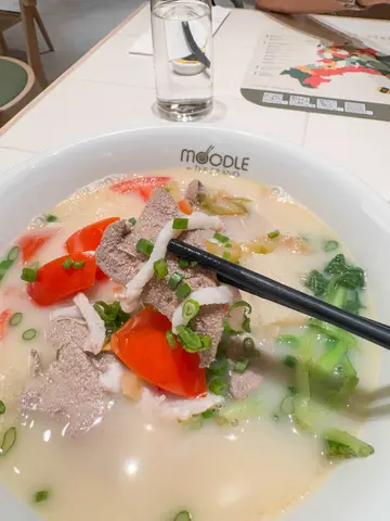 新開的合和商場有間以中國各地經典麵食為核心的中式麵食餐廳。MOODLE BY THE GRAND 除了麵食,也提供涼菜、小吃等。餐廳不走傳統麵館的煙火氣,而是偏向現代化的舒適用餐環境。最具特色的莫過於「開放式廚房」,可以近距離欣賞師傅烹調過程。🍜南京肚皮麵 (HKD 88)湯底喝起來順滑醇厚,配搭細長麵條一起吃,每一口都充滿濃郁風。配料亦相當豐富,除了爽脆的豬皮,還有豬膶、番茄、青蔬等。🍜河南燴麵 (HKD 98) & 上海蒸皮蝦仁小餛飩 (HKD 68)前者乳白的湯色同樣滋味濃厚。後者搭配清爽湯底,吃起來不會膩口,味道清香。總括來說,價格定位偏中高,一頓下來算不上親民,所以這餐廳只是想嘗試精緻麵食的選擇。…查看更多