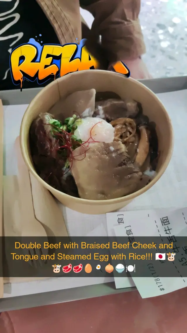 Double Beef with Braised Beef Cheek and Tongue and Steamed Egg with Rice!!! 🇯🇵🐮🐮🥩🥩🥚🍳🧅🍚🍽️