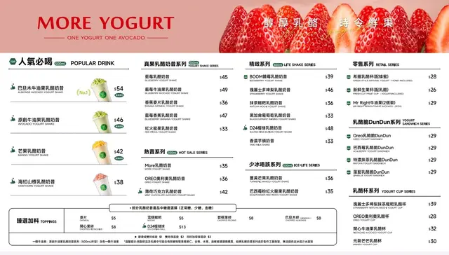 MORE YOGURT (將軍澳) 網址: https://s.openrice.com/QrbS0KA0D00 地址: 香港將軍澳唐德街9號將軍澳中心1樓137A號舖 電話: +852 55870804