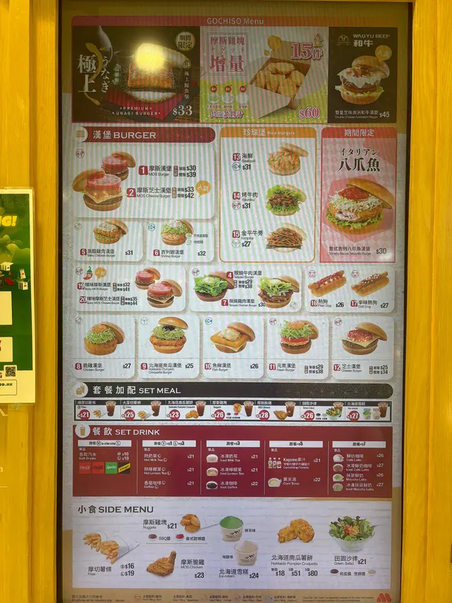 MOS Burger (大埔超級城C區) (大埔) 網址: https://s.openrice.com/QrbS0q9C700 地址: 香港大埔安邦路8&10號大埔超級城C區1樓537-538號舖 電話: +852 26185199