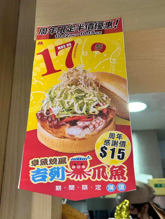 Mos burger 17周年,推出咗個優惠,可以用$15買吉列八爪魚包🤩🤩買咗一個吉列蝦堡,同吉列八爪魚。雖然嗰日我哋好夜先去,但係吉列八爪魚同吉列蝦係即刻炸,熱辣辣好好食。吉列八爪魚$15食呢個包比我嘅感覺好似食緊章魚燒,佢用嘅醬係燒汁,仲有加埋紅薑,比章魚燒仲好食,因為佢個皮係炸,好脆。鍾意食章魚燒嘅可以一試😜👍👍👍👍吉列蝦堡$29我哋叫咗芥末醬,蝦塊炸得好脆🍤🍤,同時唔油膩。查看更多