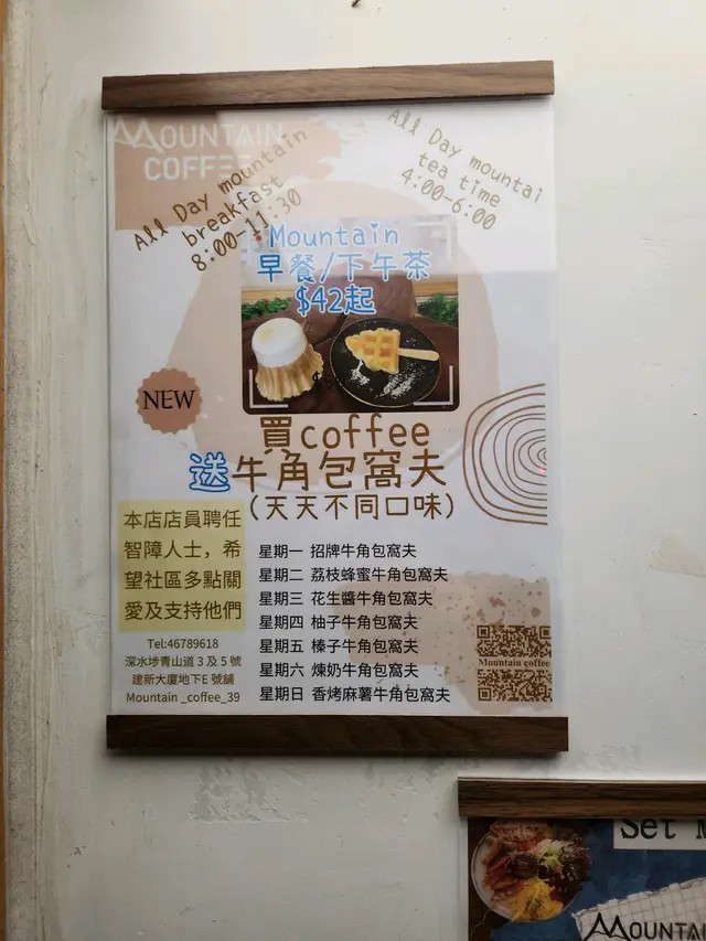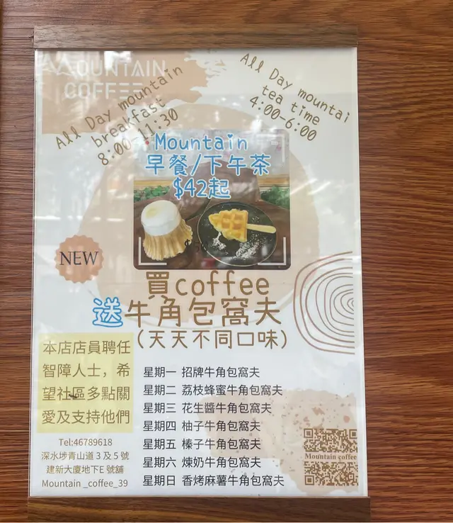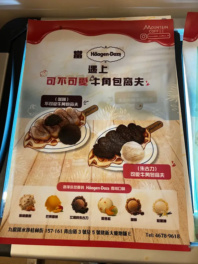 Mountain 牛角包窩夫專門店 (深水埗) 網址: https://s.openrice.com/QrbS0LkOB00 地址: 香港深水埗青山道3及5號建新大廈地下E 號舖 電話: +852 46789618