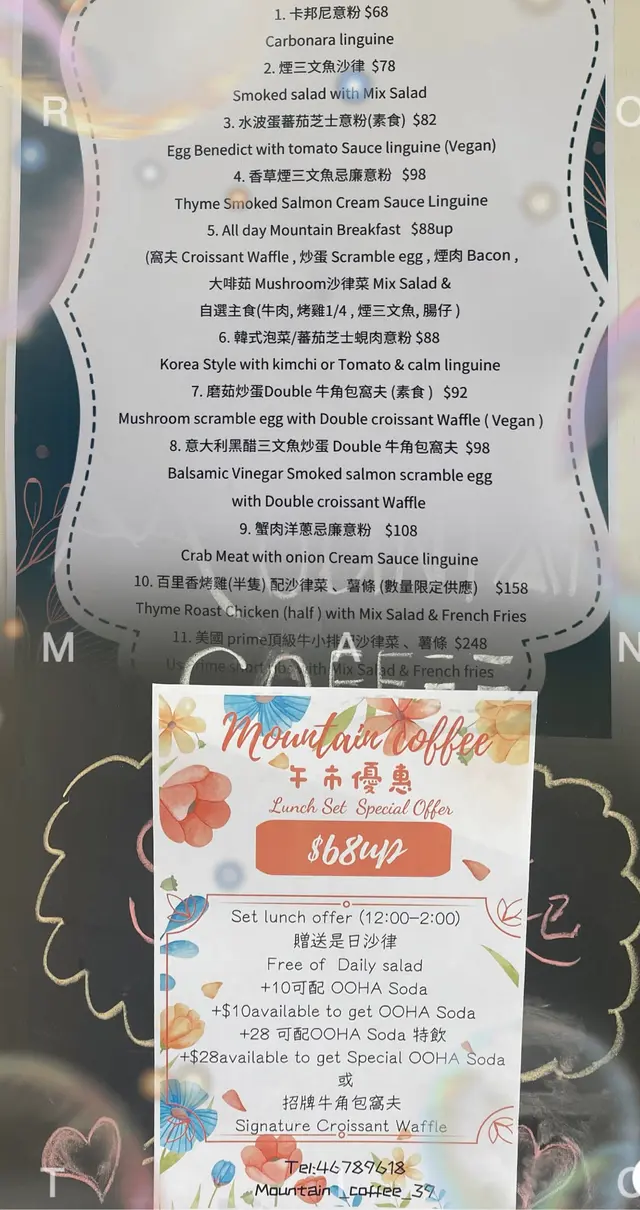 今天和友人在深水埗食完午餐後搵個地方飲咖啡,在OpenRice search一下, 出現一間叫Mountain Coffee在附近,於是去試一下。 Cafe裝修很有文青風格,地方舒服空間足夠。餐廳用QR code點餐。 我們想飲熱latte,黑衫店員叫我們點白咖啡, 不久,黑衫店員突然放下兩杯飲品無聲無息地離開, 飲了一口咖啡之後,大家都覺得中伏😰,咖啡不是熱的🥶,咖啡質素對不起收$48/杯,服務是零。黑衫店員(不知道是否老闆)全程面黑又嘆氣,結帳時還要收+1服務費, 心諗這樣的服務還收服務費真係面表厚,完全不顧及客戶感受👎🏻👎🏻👎🏻👎🏻👎🏻。 真心從未去過一間咖啡店好似貼錢買難受的感覺。難怪而家香港食肆低迷,香港人被趕上深圳消費,可以怪誰呢? 業界應該反思一下。…查看更多
