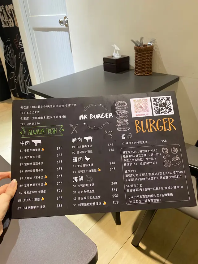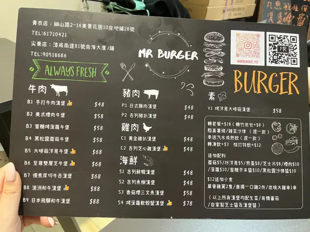今天工作完已經兩點多,天氣太熱真的冇興趣吃飯⋯⋯門口看見一間新開小店,新將期間八折⋯⋯MR Burger 驟眼看好像寫著Mr. 我仲以為叫先生漢堡⋯⋯