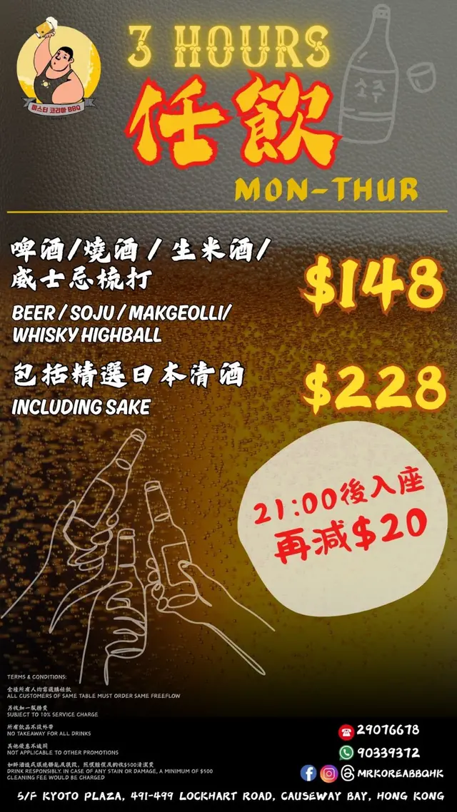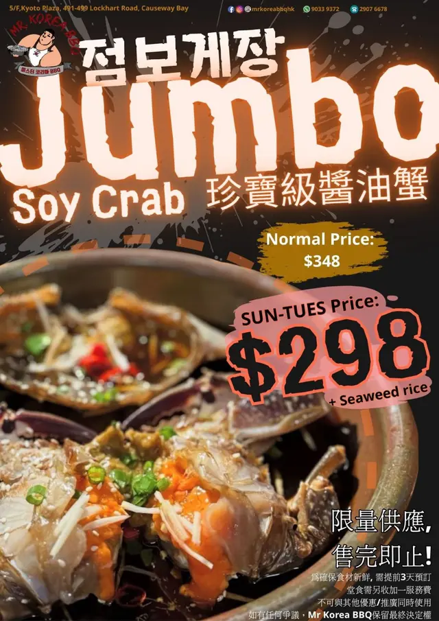 Mr. Korea BBQ (銅鑼灣) 網上訂座即賺Rice Dollars 網址: https://s.openrice.com/QrbS0ZteD00 地址: 香港銅鑼灣駱克道491-499號京都廣場5樓 電話: +852 29076678