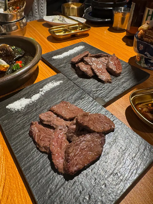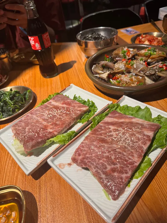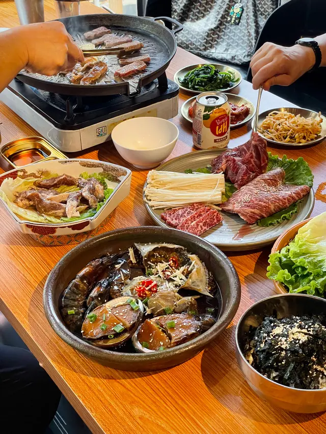 午市韓燒$50起!? crazy value for hk and one of the best kbbq spots! their lunch starts from just $50 w unlimited seaweed soup, side dishes & seaweed rice. if u’ve been following me, u know im always on the hunt for amazing korean food- & this place did not disappoint! (we came here twice last week lol)全港最好食韓燒之一!午市紫菜湯前菜紫菜飯任添,性價比超高。我啲朋友都知我常食韓國菜,呢間真係冇得輸,同屋企人上個禮拜幫襯咗兩次。但可能因為係銅鑼灣上樓餐廳所以冇咩人識,推薦大家試試a la carte單點- 🦀marinated seafood platter 醬油海鮮拼盤includes soy marinated crab, abalone & prawns. a mix of sweet and savoury. super fresh!醬油蟹爆膏,鮮甜濃郁,仲有鮑魚同大蝦,價錢唔貴🐮beef platter 牛肉拼盤high quality short ribs, both marinated and non-marinated short ribs. perfectly tender and full of flavour 高質牛肋骨,醃同原味都咁好食,肉嫩多汁🐷pork skirt meat 護心肉juicy, smoky and so underrated. we ordered 2 portions!超級juicy,炭香十足,最後都叫咗兩份🐙seafood scallion pancake 海鮮蔥餅the batter was a bit too thick & i wish the edges were crispier (i luv that burnt edge crunch)粉漿有啲厚,同埋我比較鍾意更多燶邊脆口㗎🍻orion draught beer, pear juice, yuzu tea生啤、梨汁、柚子茶🍨ice cream (sesame/ matcha)老闆還送了雪糕俾我哋…查看更多