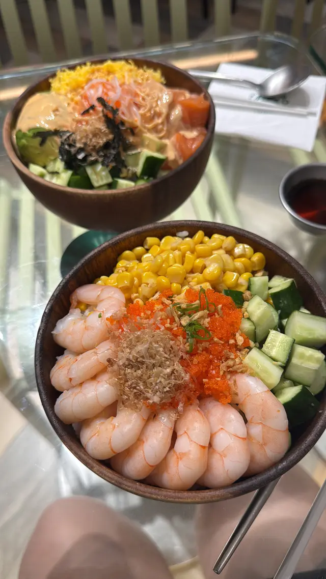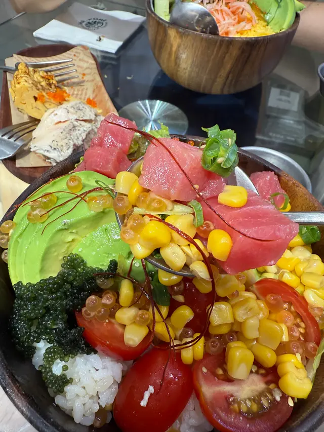 Bff 平日的飲食習慣就是多肉少菜,而且極愛吃刺身壽司,這天我特意帶他到鰂魚涌吃夏威夷魚生飯,既健康,又能滿足他吃魚生的願望。店內除了有Signature Bowl Set 亦可自選配搭 - Build Your Own Bowl。 Mega Poke Bowl份量亦多,基本上足夠兩人享用,內裏的食材亦非常吸引,有三文魚、吞拿魚、蝦、厚燒玉子、牛油果、甜粟米、溫室青瓜、蛋絲、車厘茄、飛魚子、海葡萄、木魚絲加芝麻。吞拿魚粒粒肥美,充滿魚油香味;大蝦爽口彈牙;厚燒玉子香甜有蛋香;牛肉果油潤細滑;海葡萄鹹鮮;配上不同的蔬菜及醬汁,味道層次豐富。慢煮安格斯封門柳配黑椒牛肝菌醬 封門柳肉質粉嫩細滑,不乾不柴,慢煮能完美地將肉汁緊鎖,牛肉味突出,蘸上黑椒牛肝菌醬,有提鮮作用,超讚。吞拿魚牛油果他他賣相精緻,可清楚見到吞拿魚及牛油果分了上下層,吞拿魚粒粒肥美嫩滑,牛油果軟滑油潤,加了點點醋汁調味,清新開胃。冷泡茶吃飽飽後,喝一口冰冷的冷泡茶,清爽解渴又消暑。…查看更多