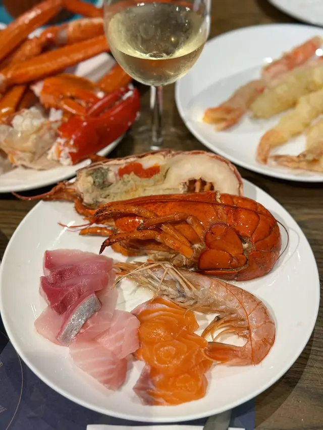 26/09初次到來嘗試網上好評嘅自助晚餐,由於7:30-22:00已經售罄,只好轉購5:00-7:00較為平宜嘅黃昏時段。4:45早到後可以先行一轉視察一吓環境,今次亦好幸運被安排到鄰近生蠔位嘅一張長檯😍今次嘅Pacific Oyster 非常爽脆,size唔大唔細。兩位師傅處理過程非常嚴謹,清洗十分乾淨,連冰水都加入咗檸檬片增加味道👍相信生蠔控食十零廿隻絕無問題。當然熱葷亦款式唔少,食材都好精緻。冬菇鴨掌炆得好入味,西蘭花螺片夠爽口。中蝦都好香甜新鮮😋👍切雞皮薄香滑,雞味濃。長腳蟹腳當然人龍長長,的確有肉哋又略帶淡淡嘅咸水味,好食。芝士焗龍蝦就略嫌過火熟咗一點,肉哋比較實唔夠爽甜要扣分,芝士味係啱啱好嘅。主打嘅佐賀和牛要薄切,係要用切面包機嚟刨片。🙄佐賀肥牛果然有來頭,廚師只係用鐵板燒係咁意烤廿秒左右,加入蔥花蒜片捲起就可以上碟。每人每次只可以攞一片,好食唔肥膩總共食咗三片😍🤩😋👍💯右邊嘅roasted beef 亦出奇地交到貨,鮮嫩易入口,唔有韌筋。咬落肉味濃有肉汁,加上免費任飲紅/白酒。🍽️🥂😋😂🤩😍慶祝生日/紀念日又可以有代為唧花嘅gimmick 迷你心太軟蛋糕,好受在場小朋友及女士歡迎🤩😍😂👍食物款式都唔少,貴價食材亦多。順帶一提燉湯非常好飲,足料味濃好飲🤩😍👍依個價錢亦算OK,會encore 。全晚最滿意嘅就係生蠔😍🤩😋😋😋👍👍👍1…查看更多