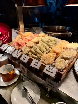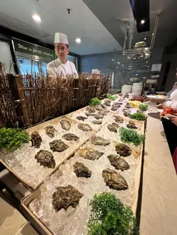 呢間buffet本身已經好出名,今次做個乖乖女,帶埋媽媽嚟食好野(⁎⁍̴̛ᴗ⁍̴̛⁎) 一入到餐廳,我嘅靈魂已經比甜品吧吸引咗🤩一陣要留肚大食特食🤤🤤🐮佐賀牛Corner呢個corner擺咗好大嚿佐賀牛出嚟,睇得出雪花分明,品質好高👍🏻仲可以揀唔同做法,包括Shabu Shabu、烤牛肉同鐵板燒,個人最推係Shabu Shabu,可以食到好Juicy嘅佐賀牛本牛🤤🦪生蠔吧有師傅坐陣即開生蠔,每人每次限拎兩隻,但亦都因為咁而超級新鮮,唔怕行嘅可以拎多幾轉食返夠本🤣🤣(題外話,師傅好搞笑🤣🤣)🦞刺身、海鮮超級新鮮,大推赤貝同紅蝦,有時仲會有原隻嘅波士頓龍蝦🦞可以拎,但唔係刺身嚟嘅🙈(可惜我哋呢日唔遇唔到😭)🐟蒸左口魚唔腥,亦都唔會因為保溫而變乾變嚡,好好食🤤講返甜品先,所有款式都好精緻,款式又多,食多幾款都唔怕🫰🏻不過我淨係試咗兩款都已經好飽好滿足了🥹🥚燉蛋焦糖好脆,蛋味濃郁好滑,不過再多啲生果會更好🥛牛奶奶凍牛奶味好濃💕我哋仲有食心太軟,外皮脆口,一咬開啲朱古力漿就湧出嚟💕師傅手字好靚都係一個加分位👍🏻中意食甜品嘅絕對要嚟試吓(幫我試埋其他款式吖🤣🤣)…查看更多