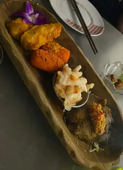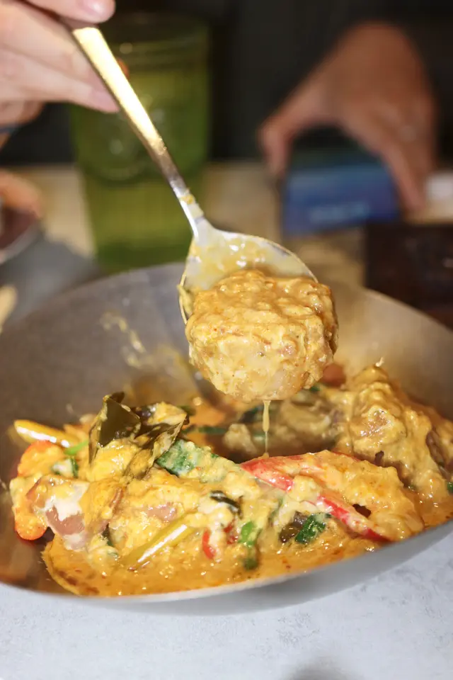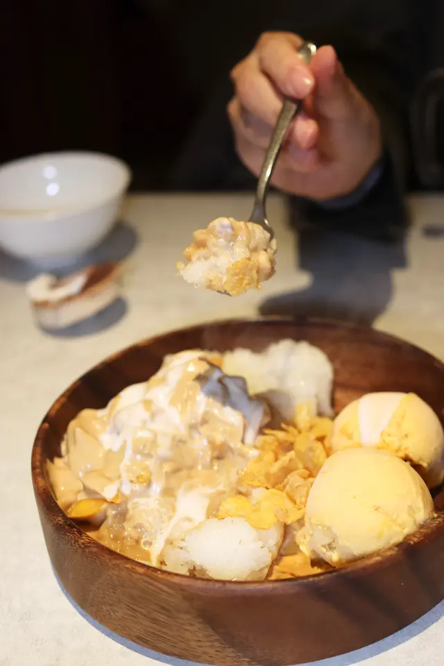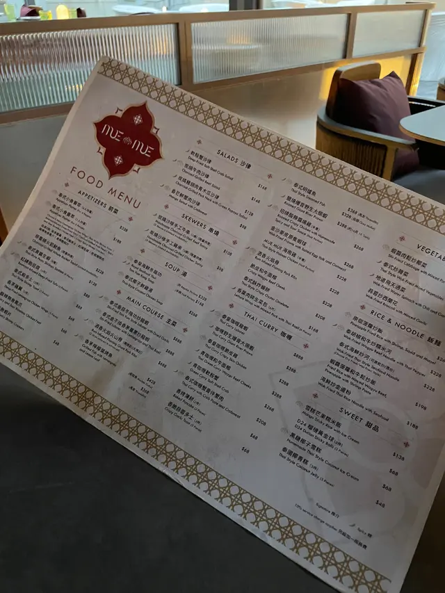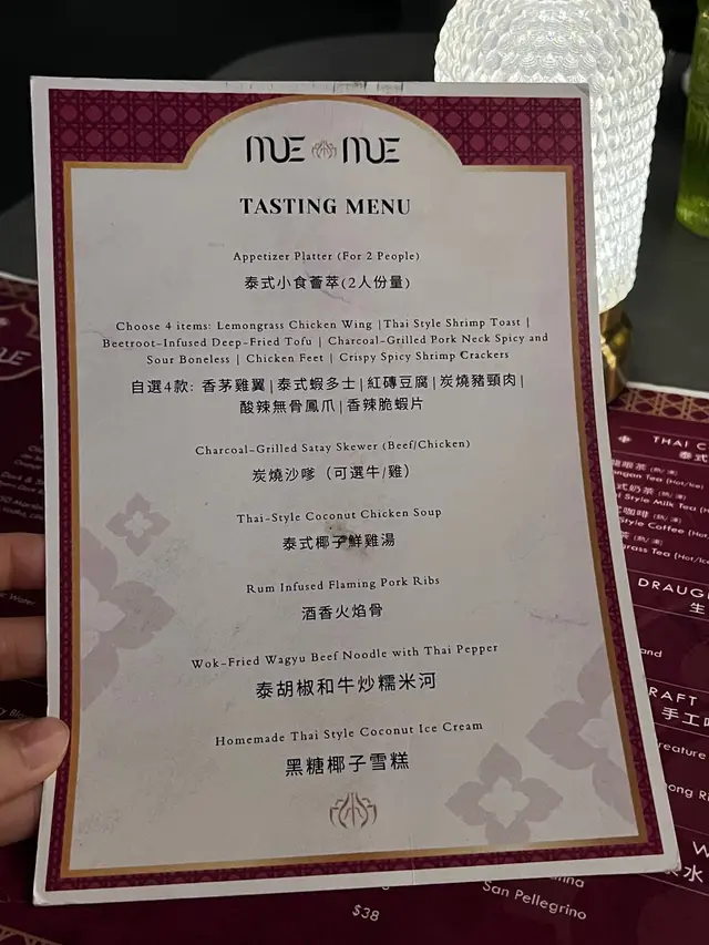 最近同朋友去咗尖沙咀的MueMue泰國餐廳一入到去 室內裝修好grand, 戶外好chill, 見天氣唔太熱就揀左坐戶外!泰式小食拼盤個樣真係好吸引 幾樣菜式,每一道都給我唔同嘅驚喜泰式蝦多士外脆內嫩,蝦肉鮮甜,配上特製醬汁,味道一流紅磚豆腐炭燒得恰到好處,外脆內滑,搭配香菜同辣椒,令人胃口大開炭燒豬頸肉肉質鮮嫩,燒得啱啱好 酸辣無骨鳳爪酸辣適中,十分開胃泰式椰子雞湯,湯底濃郁,仲有d冬陰公味,非常特別,絕對係我飲過最好飲嘅椰子雞湯!必點!酒香火焰骨 呢個好啱打卡,上菜時有火焰效果,食落味道都ok!主食方面,我試咗泰胡椒和牛炒糯米河,和牛煮得嫩滑,糯米河煙煙韌韌有咬口,不錯!飲品方面,我點咗椰子雪糕紅豆珍多冰,椰子雪糕好味,配埋珍多冰都好夾呀!最後甜品揀左 黑糖椰子雪糕 起初以為得舊雪糕,點知原來有桃膠襯托,絕對係誠意之作! 整體黎講,呢到菜式比一般泰國餐廳特別,真係值得一試,唔單止味道好,環境都幾舒服,非常適合同朋友聚餐!…查看更多