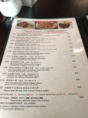 午飯時常在公司附近找吃的,終於找到了平價午餐。打開menu,嘩有成廿十幾個Lunch set.平的Lunch set 只跟湯,另外較贵的有跟飲品。我喜愛午餐的配撘,總有一些炒雜菜在旁,炒得很美味。午餐有咖哩(豬,牛,羊,雞),有扒/雜扒(豬,牛,羊,雞),有西式意粉如肉醬,卡邦尼,等,也有局飯,意粉,漢堡,等。味道,口感也不錯,賣相也很好,只是大部分食物也較咸了一些。如午餐點扒餐或牛脷都可選配飯,意粉,薯條或沙律,漢堡餐則跟沙律及薯條。平價的午餐最貴的也只是68元很抵食。另外有不跟餐的烏冬,拉麵也只需40元亦不用加一。上餐的速度也頗快。服務也OK. 因為餐廳實在有很多選擇,午餐時可以常去。Read More