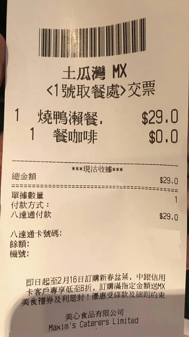 今天下班有点晚,肚子非常饿,下了车后马上看到 MX 快餐店,也不作他想,衝进去解决晚餐。这家店已经开了很久,期间有装修过,但与新型快餐店比较,始终感觉它还是有点过时。到达时店内没几枱客人,冷冷清清的,唯一好处就是落单和找座位没有难度。晚上套餐都可以在水吧上的显示屏看到,主要是中式套餐为主。很久没吃焗猪扒饭了,拿到手时很热。由于整个器皿已经放满了饭,吃的时候有点狼狈,如果另给一个空碟子会更好。实在太饿了,没想太多,狼吞虎咽地吃着。发现饭表面铺了不少芝士,非常香浓。猪扒也放了不少,肉很腍和入味,整体搭配都不错。可能肚子真的饿,感觉这顿饭的质量很不错。…查看更多