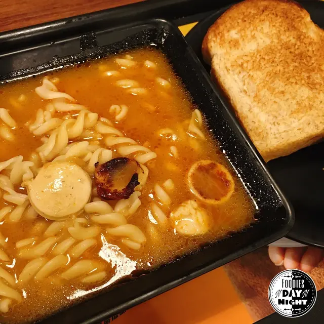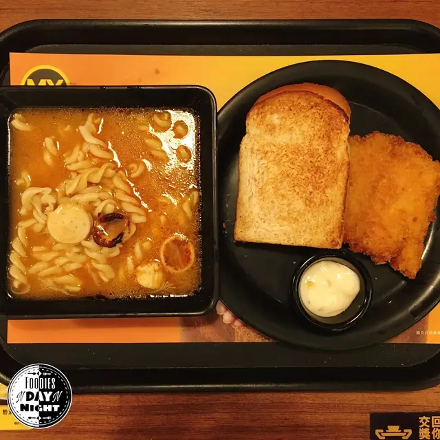 龍蝦濃湯腸片螺絲粉 脆嫩魚柳 配粗麥多士