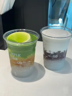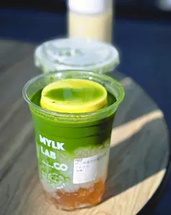 這間香港豆乳飲品專門店位於中環街市2樓,主打精品濃豆乳的各種食物及飲品,採用百分百有機黃豆製作,純素低糖無奶配方,天然又健康又美味~店內採用開放式廚房,能欣賞到即叫即製的過程。中環街市內設有多張餐桌及立食位置,亦有不少人選擇外賣,邊逛街邊喝。豆乳奶蓋抹茶紅豆拿鐵 - $52豆乳奶蓋比普通奶蓋多了份豆香,質地綿密細膩;優質抹茶的甘苦平衡良好,有沉穩的茶香,還有軟糯香甜的紅豆蓉,層次多樣。海鹽奶蓋開心果豆乳 - $52鹹香輕盈的海鹽奶蓋不膩,開心果獨特的醇厚香氣好濃郁,幼滑細膩而沒有顆粒感,絲滑的豆乳帶天然豆香,還有一粒粒清脆的開心果增添口感,層次好豐富。有機開心果豆乳 - $45有機開心果散發著獨特的香甜和淡淡的奶香味,充滿純正的堅果香氣,加入豆乳有奶油般的風味。有機抹茶豆乳 - $40高品質的抹茶粉相當細緻,有馥郁的抹茶香氣,鮮味醇厚又甘甜,濃郁滑順的豆乳沒有粗糙感,豆香味更為突出,更溫潤易入口。…查看更多