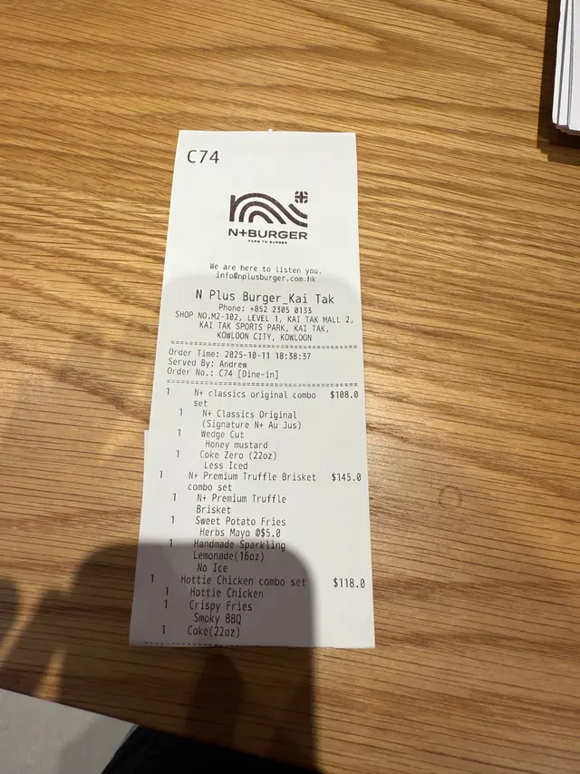 —10點幾啟德睇完show 有d肚餓場館內嘅食肆會延長開放感覺好耐冇喺街食宵夜 好彩早入嚟 等嘢食嗰陣已經好多人🍔Burger /🍟Fries/🍋Sparkling lemonade當晚有三個套餐可以揀新鮮整起熱辣辣食 份外滋味記得杯lemonade唔錯 清爽解渴下次可以嚟試下其他burger—————————————————————N+ BURGER九龍城啟德承啟道38-39號啟德零售館2 1樓M2-102號舖