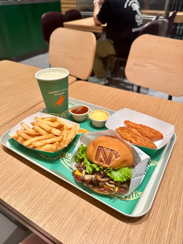 依間漢堡包店有幾間分店,今次就黎到啟德行街順便去試下佢地嘅漢堡包,入到去環境係有啲機場元素係裏面,空間夠大有好多位,座位都坐得舒服👉🏻 特級松露醬牛前腩漢堡🍔麵包用左bakehouse嘅酸種麵包,食落好鬆軟,仲印有N+字樣,牛前腩肉質細嫩,多肉汁肉香味突出🙌🏻🙌🏻,一啖咬落去松露味超香濃,即刻充滿曬成個口腔🤤,加埋裏面有啲炒菇,啲餡料一齊食成個包即刻昇華曬👉🏻脆雞柳🍗表面薄薄一層粉漿吾會過厚🙂‍↕️,炸得個火候啱啱好,雞肉肉質仲好滑吾柴身💯👉🏻薯條🥔炸得夠乾身吾油膩,而且都好脆口👉🏻自家製有氣檸檬水飲落好健康,夏天飲佢好解渴,酸酸甜甜只要叫佢地任何一個漢堡包🍔都可以加💰$40💰升級做套餐有可樂🥤同薯條🥔查看更多