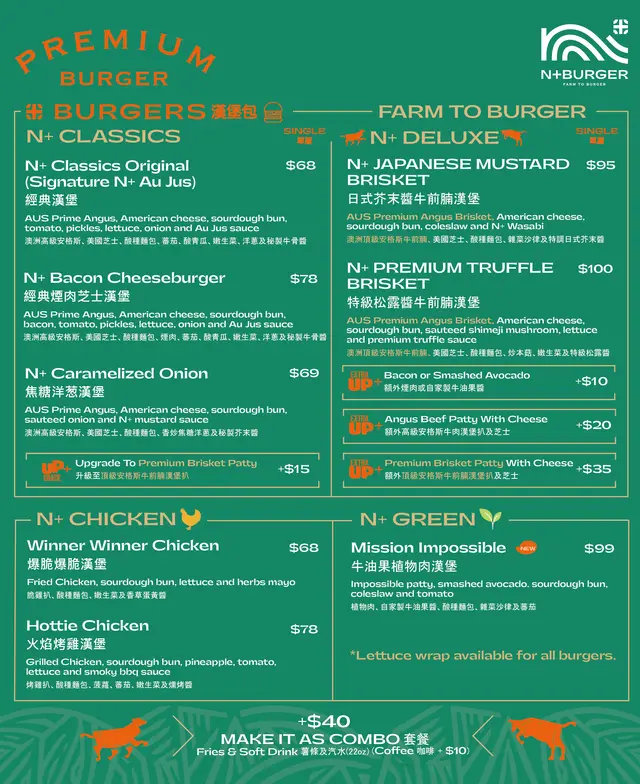 N+ Burger係香港首間擁有澳洲自家牧場嘅漢堡包店牧場有120年歷史 仲同時獲得悉尼皇家美食最高殊榮(金獎同銀獎)🤩品牌主張Farm to Burger 每日由牧場直送安格斯黑牛肉另外 所有漢堡都選用Bakehouse出品嘅酸種麵包!🫶🏻今次黎到佢地嘅堅尼地城海旁分店可以望住個無極大海景食burger真係勁chill!☺️呢間分店有兩層 十分闊落 仲有唔少打卡位🍔經典煙肉芝士漢堡 ($78)Bakehouse嘅酸種麵包超鬆軟 充滿牛油香😌漢堡以自家牧場出品嘅高級安格斯製成 煎至焦香 肉味濃郁秘製牛骨醬都好出色配上美國芝士、煙肉 經典又好味❤️🍔特級松露醬牛前腩漢堡 ($100)取餐嗰時已經聞到勁香松露同菇嘅味呢款漢堡選用牛前腩 脂香更突出本菇炒到超級香!再加上松露醬真係十級正!🥹大推!👍🏻我地兩款漢堡都加左$40轉套餐套餐會有薯條同汽水🍟🥤🍟脆薯條&脆蕃薯條又大份又好味 私心推薦蕃薯條 仲有5款自家製醬汁可以揀地嘅蜜糖芥末醬同蕃薯條都好夾👌🏻🥗烤抱子甘藍 ($49)估唔到漢堡包店都會有呢樣!抱子甘藍經店家調味 食落酸酸地 無乜苦味 幾開胃食完感覺頭先嘅罪惡感都減低左🙂↕️…查看更多