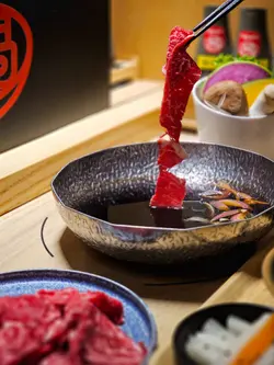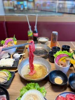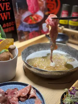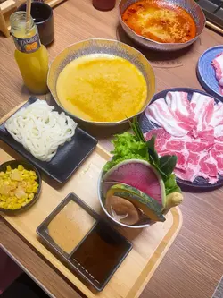 NabeGo是新開的日式火鍋店,裝潢以木質元素為主,環境舒適。開放式座位寬敞,卡位上懸掛的傳統日式布幔,充滿和風色彩。每個座位都有獨立的火鍋爐具,店內彌漫著食材的香氣,令人食欲大開。極上南非和牛腹心肉套餐南非和牛鮮嫩多汁,入口軟腍,肉香四溢,伴隨著鮮甜的昆布鰹魚湯,令人垂涎。前菜胡麻豆腐,帶來滑順的口感,散發淡淡芝麻香氣。野菜盛盒+烏冬色彩繽紛,在湯中加入娃娃菜、南瓜、冬菇及秋葵,清新解膩。南瓜的天然清甜,娃娃菜吸嗦甜湯,清脆爽口。烏冬彈牙,掛上昆布湯,更顯軟滑香甜,吃完䁔笠笠。加配新鮮鮑魚及帆立貝鮑魚肥美紮實,入口彈牙,品嚐到純樸鮮香。日本帆立貝嫰滑,充滿彈性,連同熱湯呷入口,鮮香的肉汁,更為提鮮。牛豚盛合套餐牛五花和豬梅肉的雙拼,牛五花脂肪均勻,搭配壽喜燒湯,濃郁的醬香,濃郁的牛香在口腔散發,令人暖意窩心。豬梅肉肉質粉嫰,入口軟腍,邊緣肥膏黏牙,肉汁油潤。加配手打墨魚滑前菜日式漬大根,酸爽口感,平衡肉類的油膩感。手打墨魚滑帶嚼勁,吃到粒粒墨魚肉,鮮味吸引。玫瑰荔枝冷泡茶茶香怡人,荔枝清香流過舌尖,生津解渴,淡淡花香十分治癒。…查看更多
