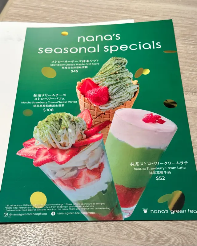 nana's green tea (九龍城) 網址: https://s.openrice.com/QrbS00dOC00 地址: 香港九龍城協調道2號AIRSIDE B1樓B128號舖 電話: +852 21171309
