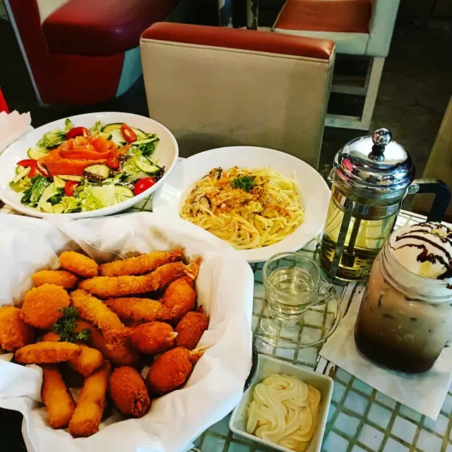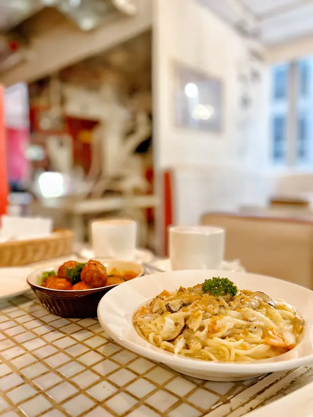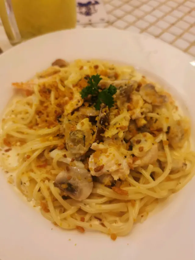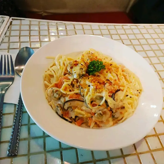 一處可以開心去食嘢,6:30至11:00唔會有人趕,最合適就是大班朋友聚派對餐,早嚟飲住,free drink,人齊再點食物。環境舒服,board game 齊備,服務員親切,也可以隨心選擇單點晚餐,也是開心分享時間。今次難得四人同行:總有人早有人遲,這裡就是最好。飲吓等吓。。。我們選了凱撒沙律,白蒜忌廉蜆肉煙三文魚意粉,黑松露海蝦帶子意粉,紅酒燉牛肋條飯。每樣也出色凱撒沙律:蔬菜首重新鮮,可以同大家講,每一條也爽脆,我們仲汁另上,要多要少,也可以隨心(服務態度一百分)白蒜忌廉蜆肉煙三文魚意粉:嘩!朋友蜆肉真心多,我估都三分一包蜆肉,忌廉包裹了每條意粉