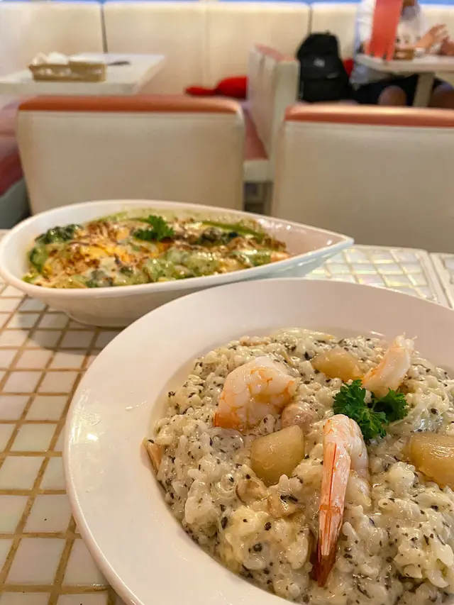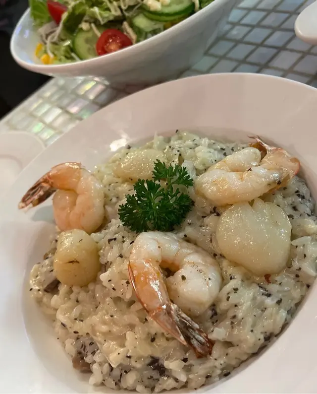 三文魚也好味。黑松露海蝦帶子意粉:蝦與帶子也大件,十分入味,黑松露味香,p.s.好大份。。。男士也會飽到不得了紅酒燉牛肋條飯:好味,好味,超好味!又係我們食餸……飯食唔哂,早知叫唔駛上飯