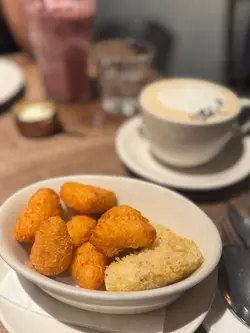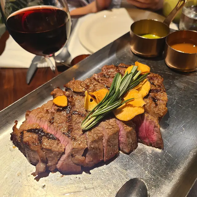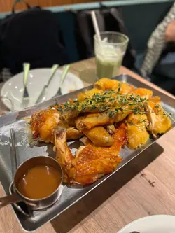 呢間觀塘工廈人氣西餐, 無論主食定甜品都好高質好出色,星期五既晚上一早就full booking, 佢嘅梳乎厘班戟暫時係我喺香港食過最好食的。牛油香草烤黃油大雞 ($258)呢個製作需要50分鐘, 所以一坐低已經即刻order。等左咁耐果然無失望,外皮酥脆到好似炸子雞皮咁,而內裡肉質好鮮嫩,內汁保持得好好,每一寸雞肉都散發濃郁香草同牛油香氣 , 令人唇齒留香。份量好多, 兩隻大雞髀令人回味無窮。香烤慢煮伊比利豬鞍 ($208)上枱時已經一片片切好了,好容易進食,好貼心。伊比利豬脂肪含量豊富而且分布均勻,肉質細嫩多汁 , 帶有獨特的堅果和奶油香氣 。 外皮燒到金香焦脆,內裡肉質細緻,口感順滑。炸芝土 ($58)有兩款芝士,分別是mozzarella芝土圈及車打芝土粒。 炸到金黃色而且好酥脆,充濃郁奶香,更加做到拉絲效果, 芝士控必吃!薯仔沙律 ($78)份量好多,但味道較為普通。 口感幾綿密, 軟而不爛,保留了一點點咬口, 煙肉碎粒增加咗香氣同口感。伯爵茶忌廉配蜜瓜梳乎厘班戟 ($118)呢度嘅梳乎厘班戟真係好出色,幾乎每台都會叫, 係我暫時係香港食過最好食嘅。 口感非常輕盈蓬鬆, 空氣感滿滿, 如同雲朵般柔軟, 真係有入口即溶嘅感覺。 蛋香奶香濃郁, 適逢蜜瓜當造季節, 蜜瓜很清甜, 伯爵茶嘅花茶香亦帶來了一點清新。鮮奶線茶(凍)($44)用咗全脂奶,口感較順滑, 綠茶清香,唔會太苦澀。…查看更多