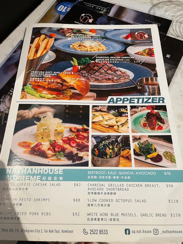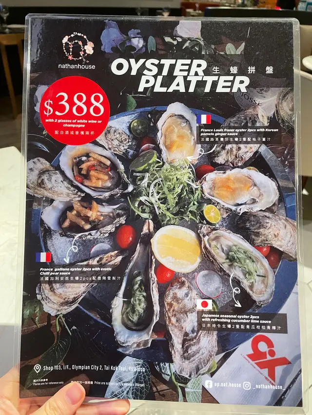 一直很喜欢吃生蚝🦪但蒜蓉生蚝吃的比较多,有时候就不想吃熟的想吃生的😉朋友推荐我去试试奥海城唯一一家有提供生蚝的餐厅——Nathan house ,就在奥海城的电影院旁边,装修很有格调,外面还有露台可以看海景。這家店的生蚝拼盘,从小到大三种生蚝搭配3种不同的酱汁,看起来就超好吃🤩🤩-📌生蚝拼盘💰388从小到大依次是:法国加利安奴🦪、法国路易费莎🦪、日本时令🦪。生蚝都非常的新鲜,一点腥味都没有!品质极佳👍🏻日本🦪超级大一只,吃起来特别爽😋搭配的3种酱汁我最喜欢黄瓜柑桔青柠汁(酸酸甜甜特别清爽)〉微辣雪梨汁柚子姜汁✨生蚝拼盘还搭配两支香槟或者白酒👍🏻📌炭烧美国安格斯肉眼扒💰288牛扒入口满嘴的烟熏香味,5份熟火候把控的刚刚好。超级喜欢吃里面搭配的薯角🤣外脆里嫩还甜甜的📌特浓和牛面颊阔条面💰128牛肉非常软烂,面条劲道,裹上香浓的酱汁很不错耶📌松脆比利时窝夫·鲜果·特浓朱古力雪糕💰88甜品摆盘超精致!窝夫搭配雪糕真的很诱人😍😍外皮香脆内里松软,蘸上雪糕可好吃了😋甜筒壳特别香脆…查看更多