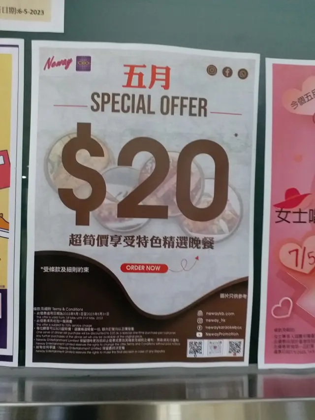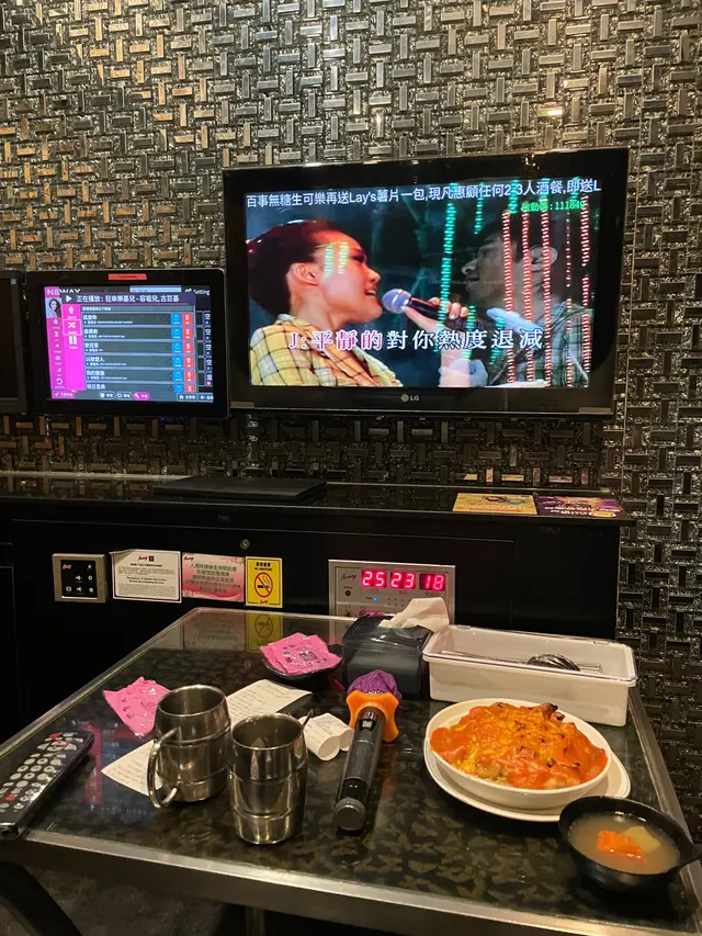 之前去過觀塘 Neway 有K Lunch覺得抵玩(觀塘嗰間10:00-16:00唱足6個鐘,包一個午餐及兩杯非酒精飲品)老友回港前一早已話要去唱K找回那些年的回憶,仲話寫定歌單,咁就佢方便約去沙田富豪唱K。沙田呢間原來無6個鐘咁長時間,只係以人數計,我哋三個人就可以玩三個鐘,有啲唔夠喉。分別點咗焗豬扒飯同叉燒烏冬,豬扒唔嚡口仲幾好味不過個蕃茄醬實在太咸太濃;烏冬正常。附送黃瓜湯同什果啫喱都唔錯。發現有些想揀嘅歌星及歌曲都無,有啲失望。…查看更多
