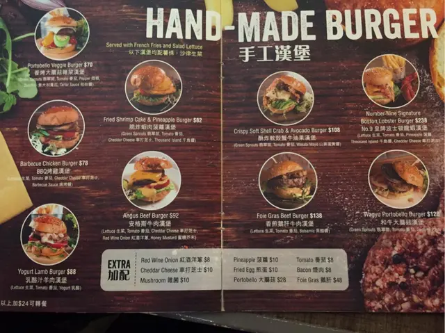 返工前, 約左朋友食個 lunch 聚下~No. 9 以前係土瓜灣店食過 (雖然已經冇左😌), 但係我記憶中佢地 burger 唔錯~所以就去整個午餐啦!九龍灣店店內 set 左好多高枱同高凳, 可能 for 晚市 D 食客一面飲啤酒一面食 Burger, 不過 D 位都好舒服😄而 Memu 方面, 除左散叫之外, 平時都會有午市套餐~先黎個餐湯, 餐湯味道都 ok, 而且都夠濃!特別嘅飲品好都好好唔需要另外加錢而朱古力同 Hazelnut latte 味道都唔錯, 咖啡味好濃!朋友叫左 Burger~5成熟Burger 真係保持到水準💪肉汁夠, 好 juicy~醬汁好香配菜又夠新鮮! 薯條夠熱夠脆!我就叫左炸魚柳薯條, 雖然都炸得好香, 份量又夠, 不過條魚有 D 雪味....而且裡面唔夠滑.....另一位朋友就叫左個茄汁螺肉意粉, 還可以啊!意粉煮得剛剛好, 醬汁都好香😄總結: 3個人 Total 食左 HKD270 左右~以哼豐富嘅午餐價錢 Ok, 而 Burger 絕對可以一試, 但係其他野食就不過不失~查看更多