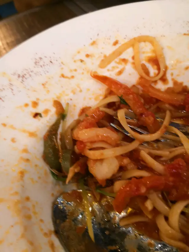 成日行過呢間都想試下, 不過次次都帶住阿爺就好似唔太岩佢食.今日一家三口就黎試下啦~FRIDAY NIGHT 冇卜位, 餐廳細細酒吧FEEL, 入到去已得返高位, 坐得冇咁舒服~係地下既只有幾張台, 所以最好黎訂台.我地叫左蝦餅 $62, OK 啦~辣茄汁大蝦扁意粉. $125, 應該得一只係大蝦, 其他都係3粒細蝦黎~~~ 蒜片黑椒牛仔粒. $128 呢個第一ROUND 叫既, 反而係最後先黎, 但佢係值得等待既, 因為佢係全餐最好味既野黎~正~必嗌~酥炸魷魚圈. $68炸魚薯條. $108呢2個後加既都快過哂黑仔粒, 應該係漏左單~呢度既服務有待進步~唔知係咪我地冇嗌酒, 好似成日都唔係點理我地咁....其實係得住宅區, 真係好多一家黎家常便飯, 唔會EXPECT 台台都叫酒飲啩?! 查看更多