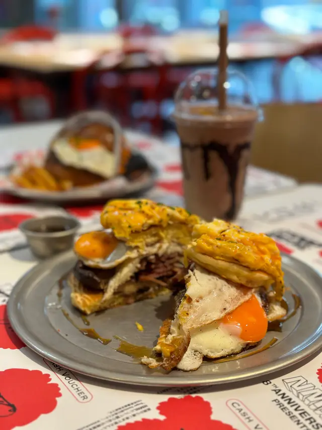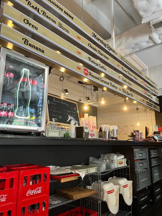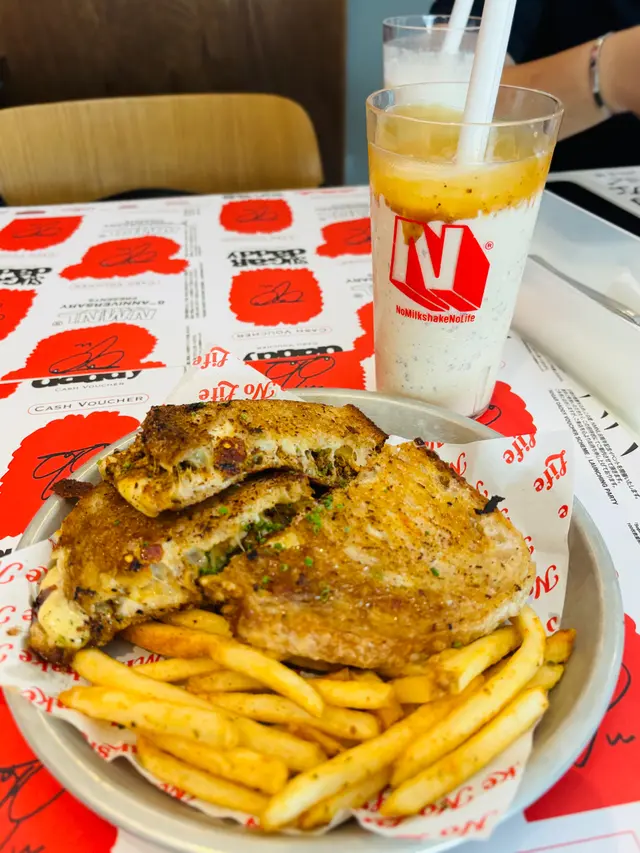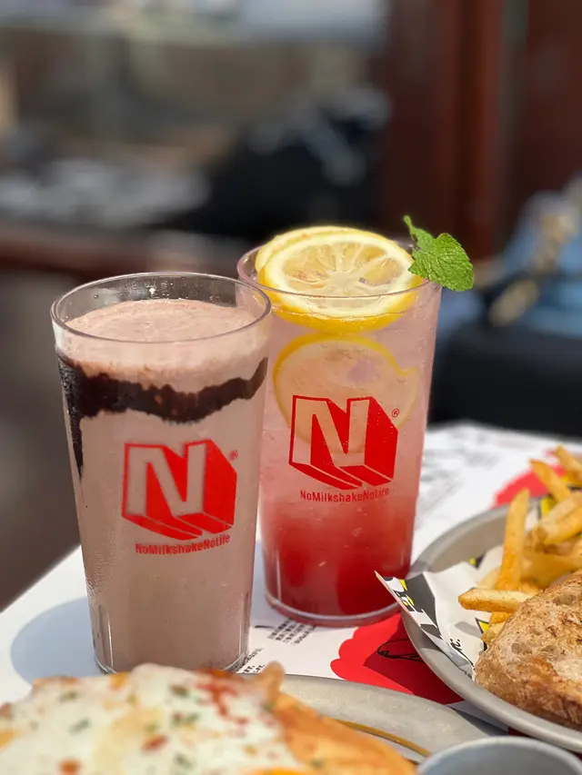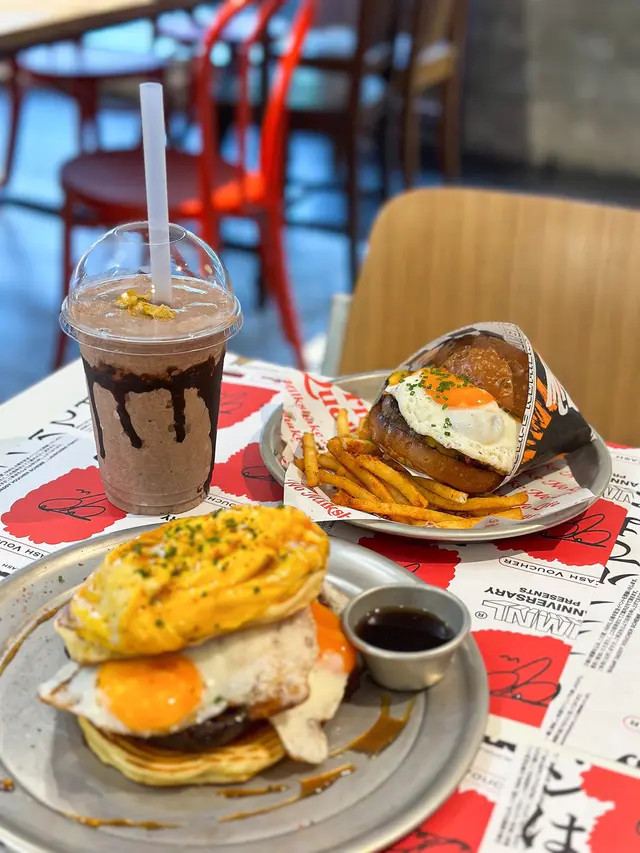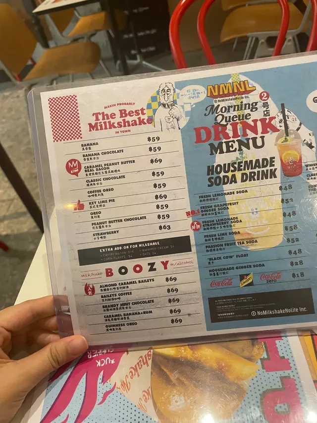朋友有介紹呢間餐廳,即管試一試~主打係milkshake既餐廳,估唔到啲熟食都好有水準Lunch hour前11點幾都差唔多full house~ 喺出面order同比錢之後先返埋位成個裝修都係行美式路線好colourful ,不過都乾淨同企理Milkshake 叫咗一杯banana 同一杯seasonal limited 既抹茶蕨餅味🍵